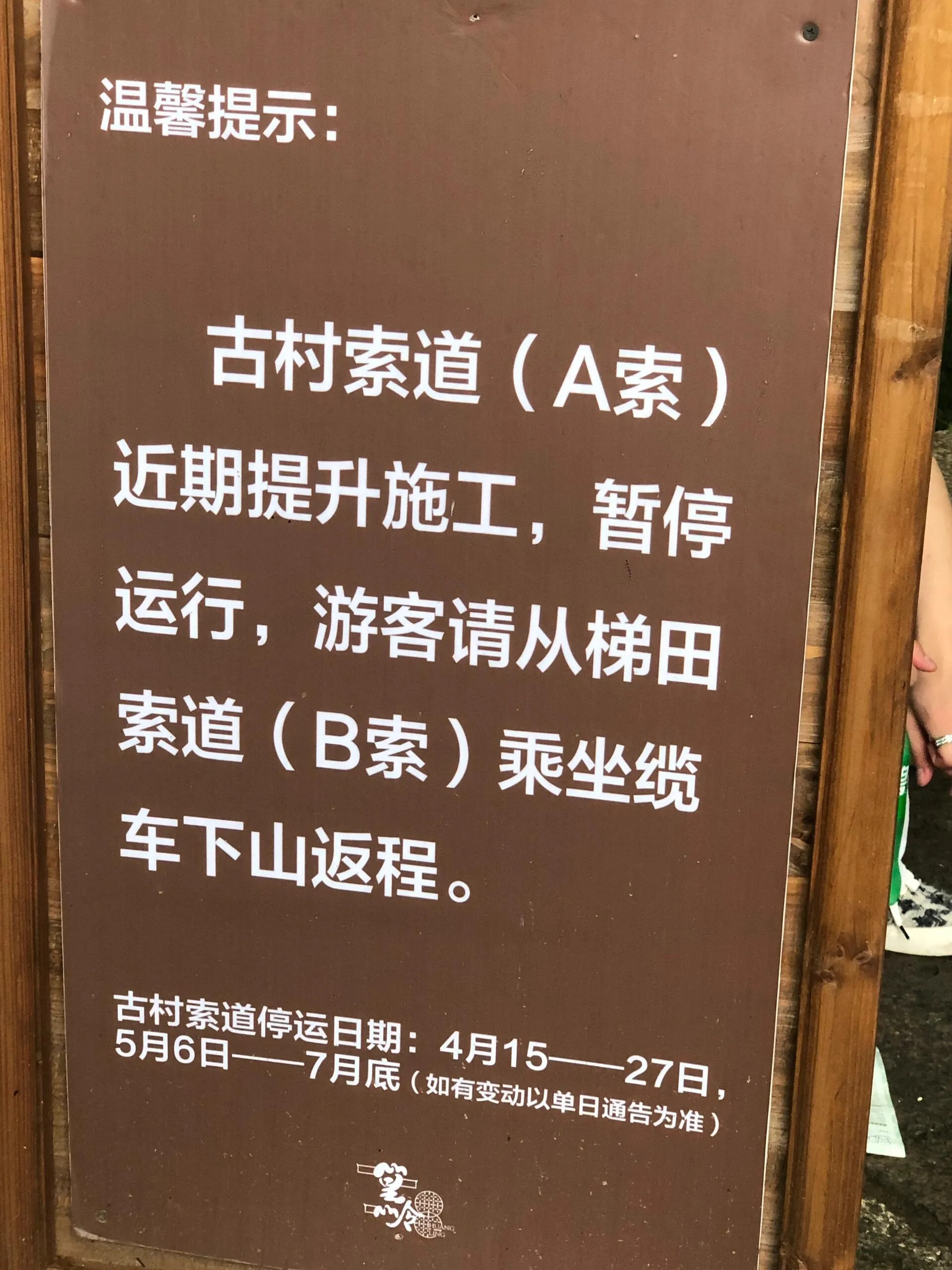 不过有一点需要吐槽,原本缆车路线是B站上A站下,但当你走到尽头的A站时,才发现有个告示牌说A站缆车要维修到7月底。这意味着我们只能冒雨徒步返回起点再坐缆车下山。其他地方都没有任何提醒,这让整个游览体验大打折扣。
