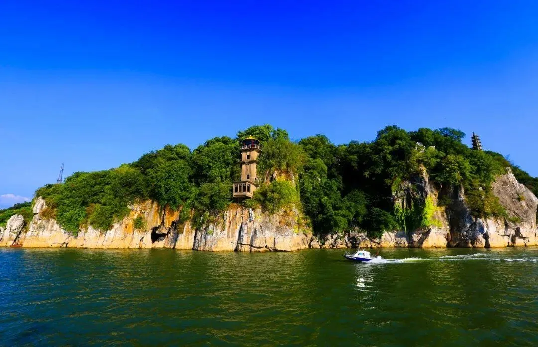 石钟山位于湖口县老城区,长江与鄱阳湖交汇处,素有“中国千古奇音第一山”之称。从山顶可以欣赏到长江和鄱阳湖汇合处“江湖两色”的壮观景象。门票加江湖两色游船票的价格为72元/人。