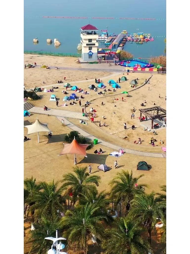 八里湖海韵沙滩位于九江市八里湖新区八里湖公园,是江西省唯一的高规格模拟海滨沙滩,也是中国大型人造海滩。作为九江市著名景点和娱乐休闲胜地,这里为游客提供了免费的海滨体验。