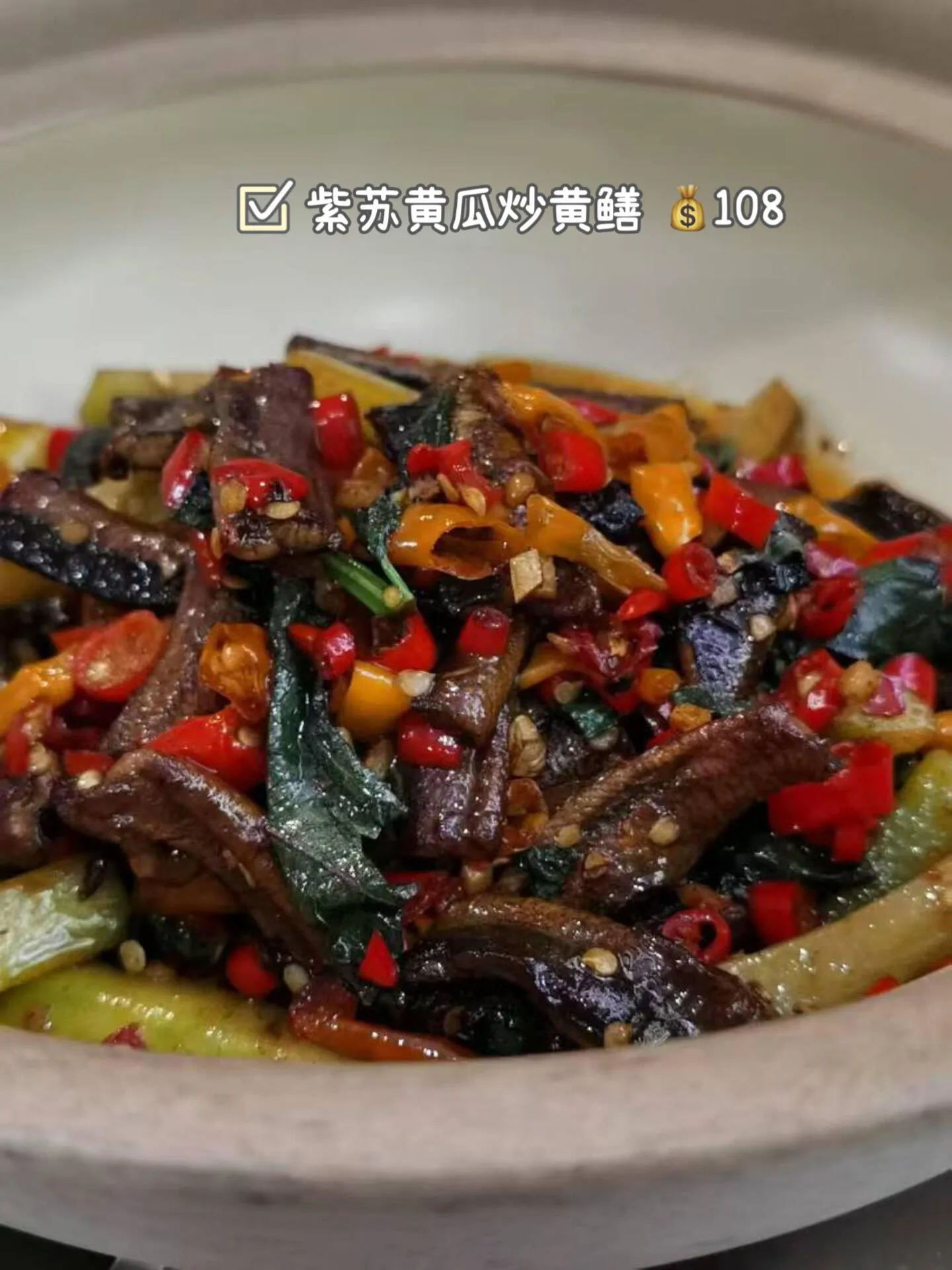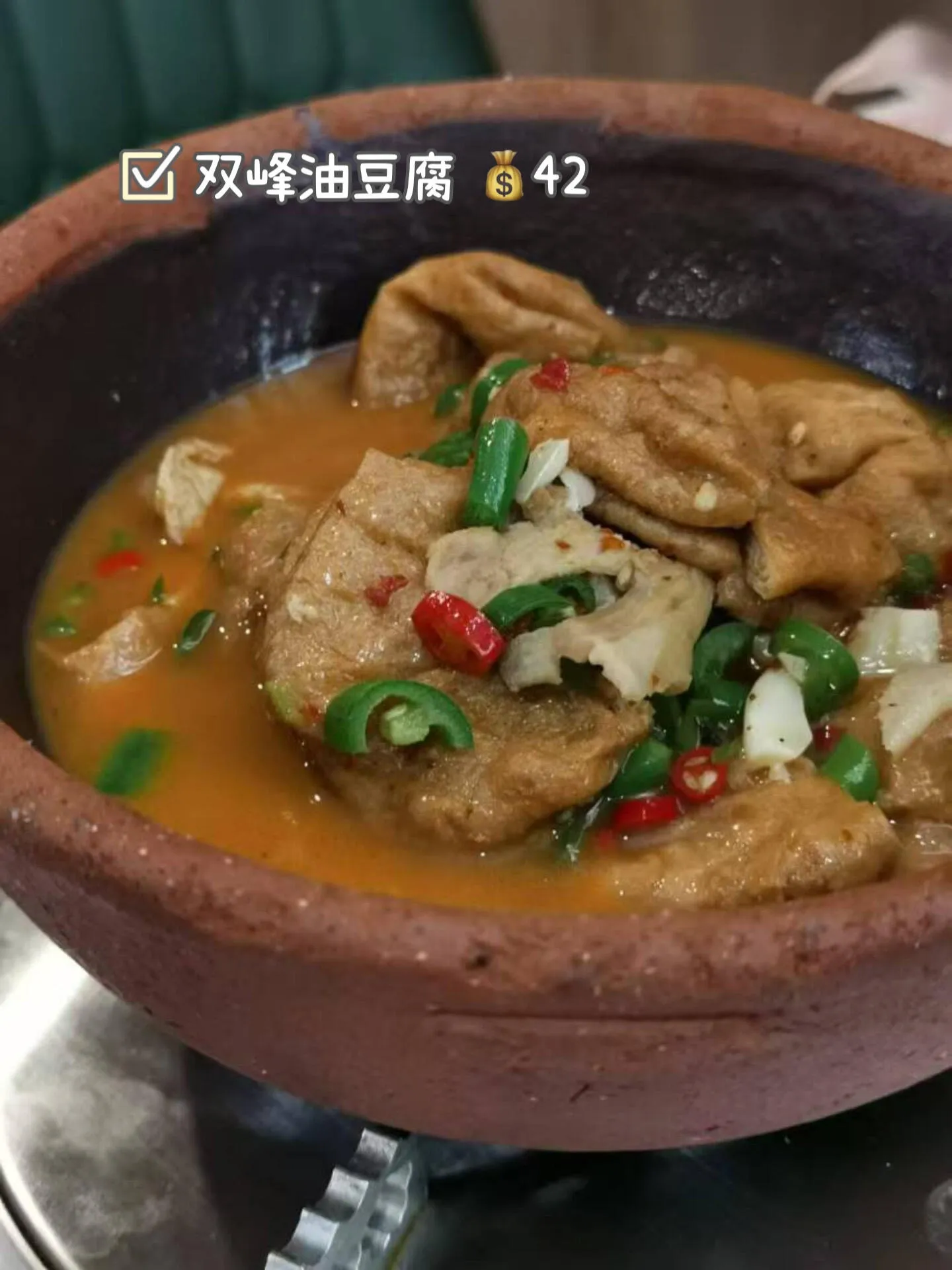 紫苏黄瓜炒黄鳝是一道充满锅气的菜品。黄鳝段满盆,紫苏香和辣椒香浓郁,既美味又实惠。双峰油豆腐则是几大块吸满汤汁的豆腐,非常下饭。
