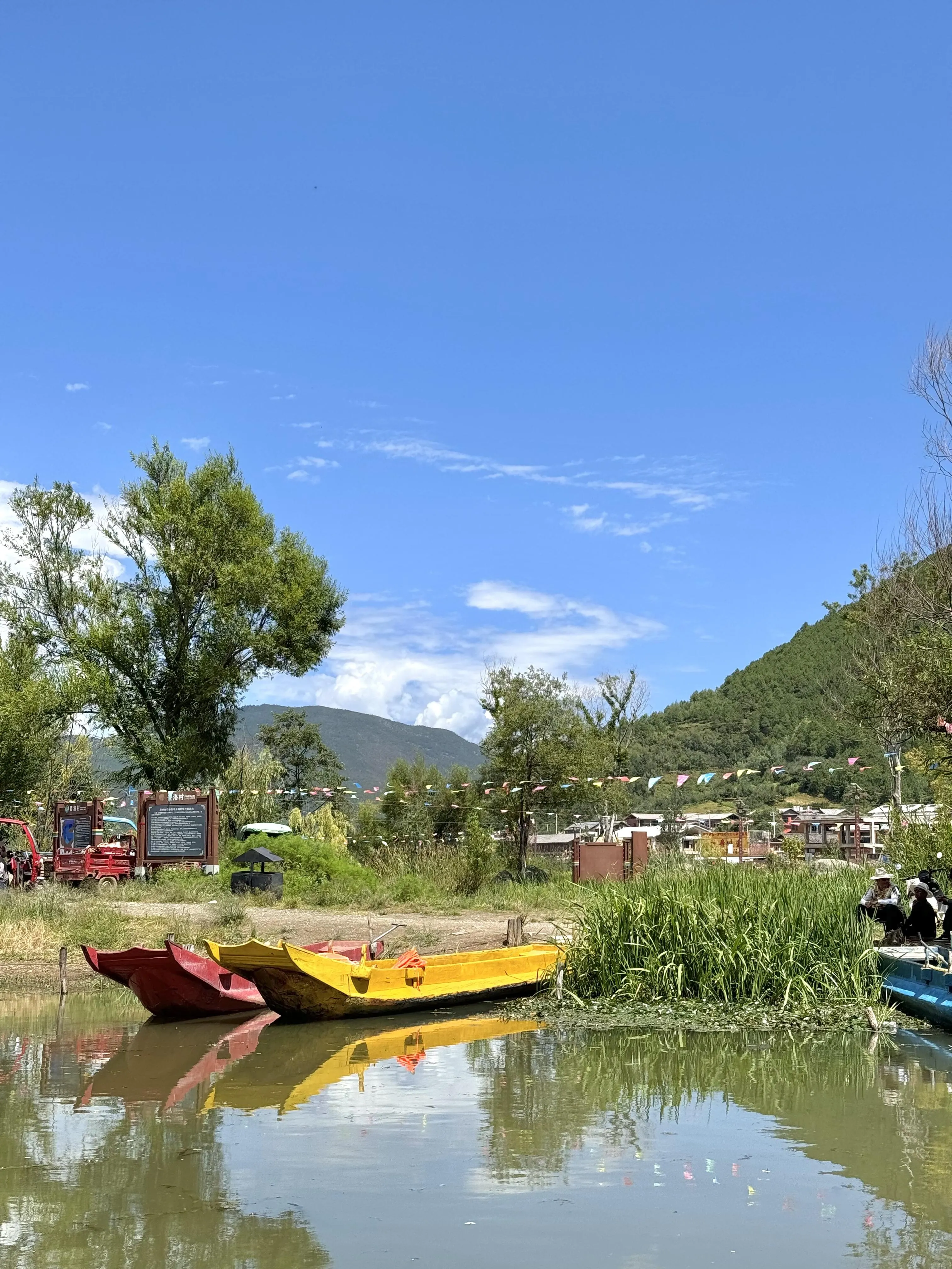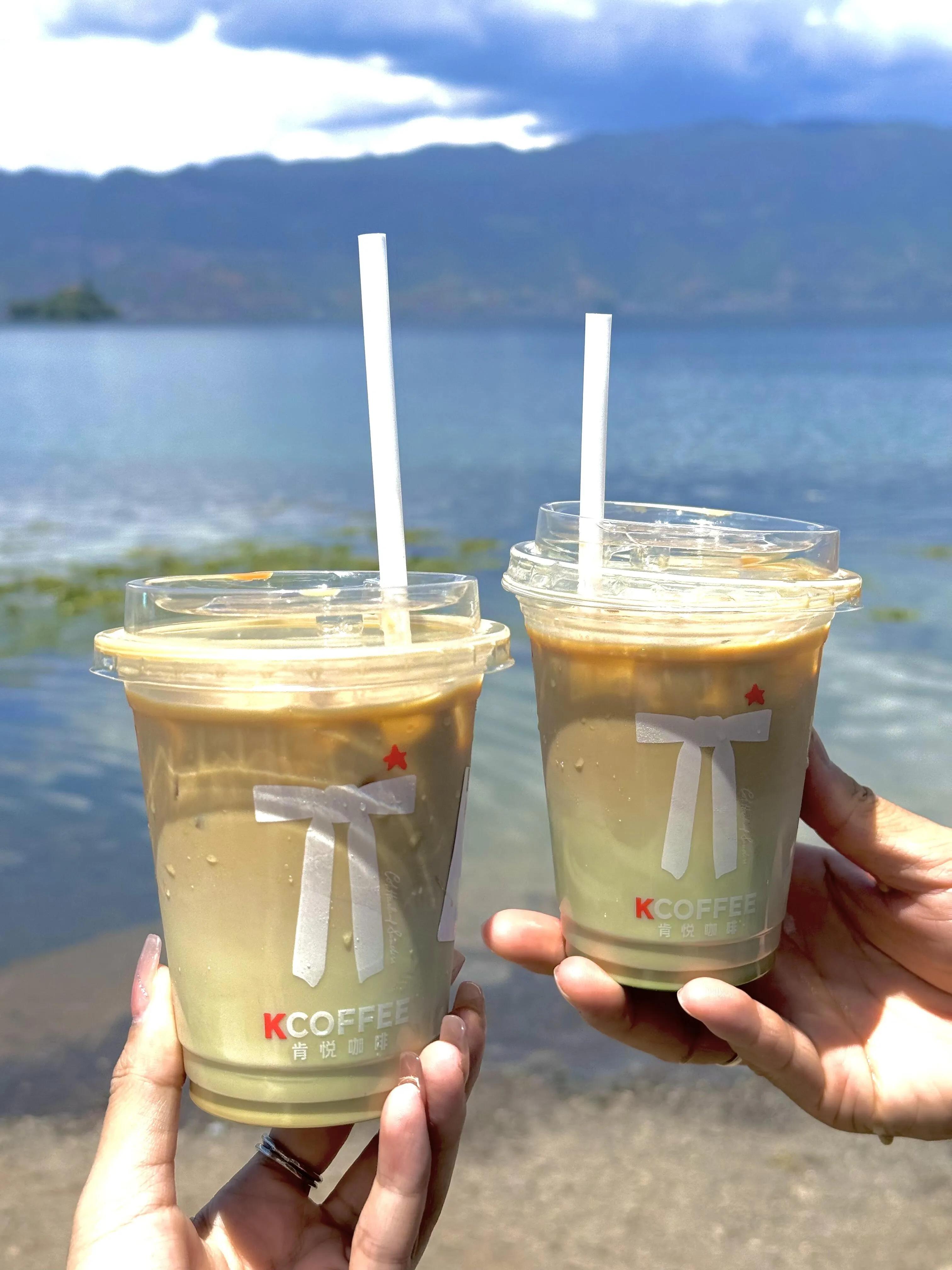 大落水村是个不错的起点,这里的商业配套比较齐全,吃住行都很方便。在湖边,我品尝了肯悦咖啡的冰吸绿豆味生椰拿铁,浓郁的绿豆味道非常美味,冰凉清爽。坐在那里喝咖啡吹风,感觉特别惬意。