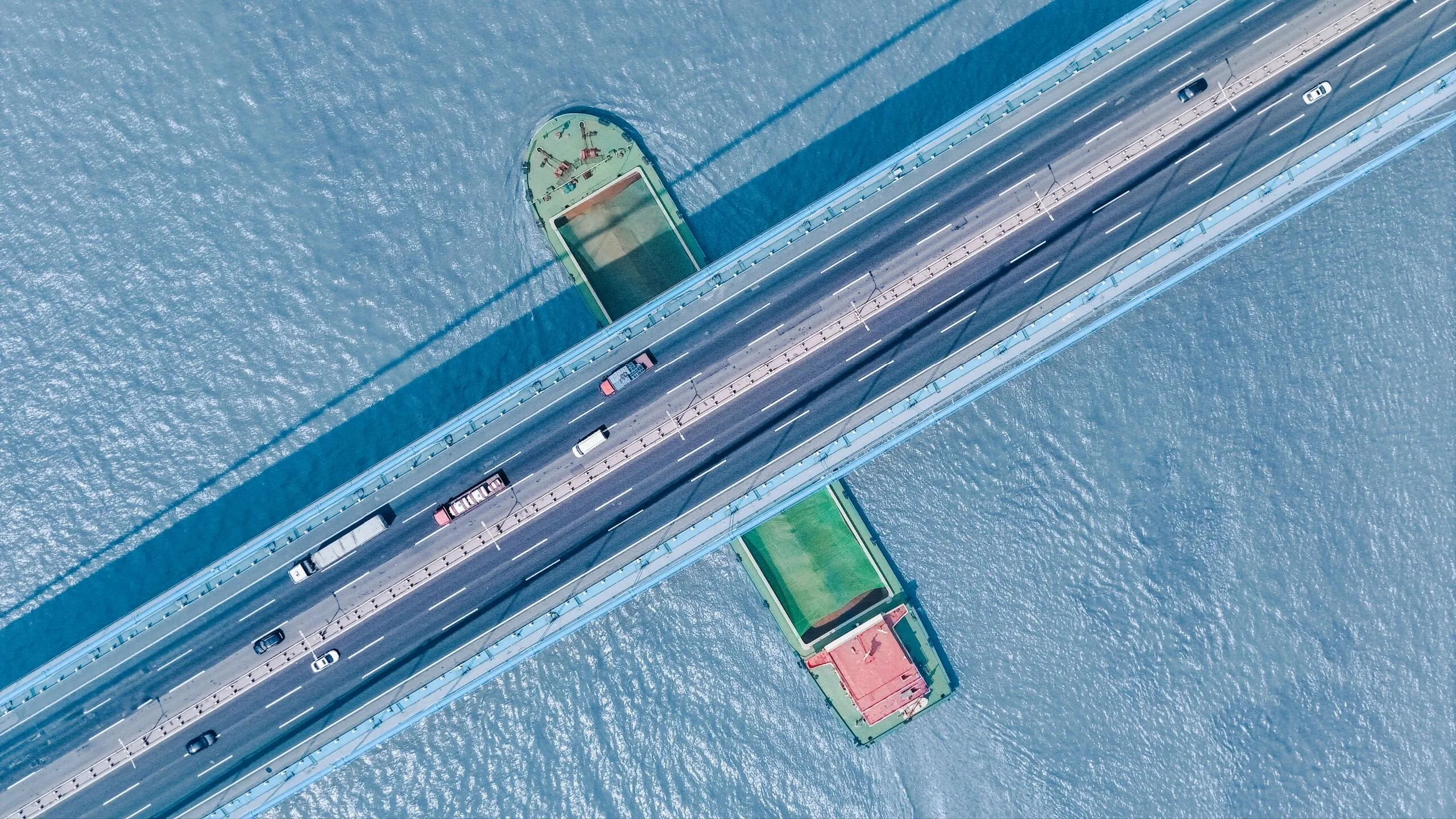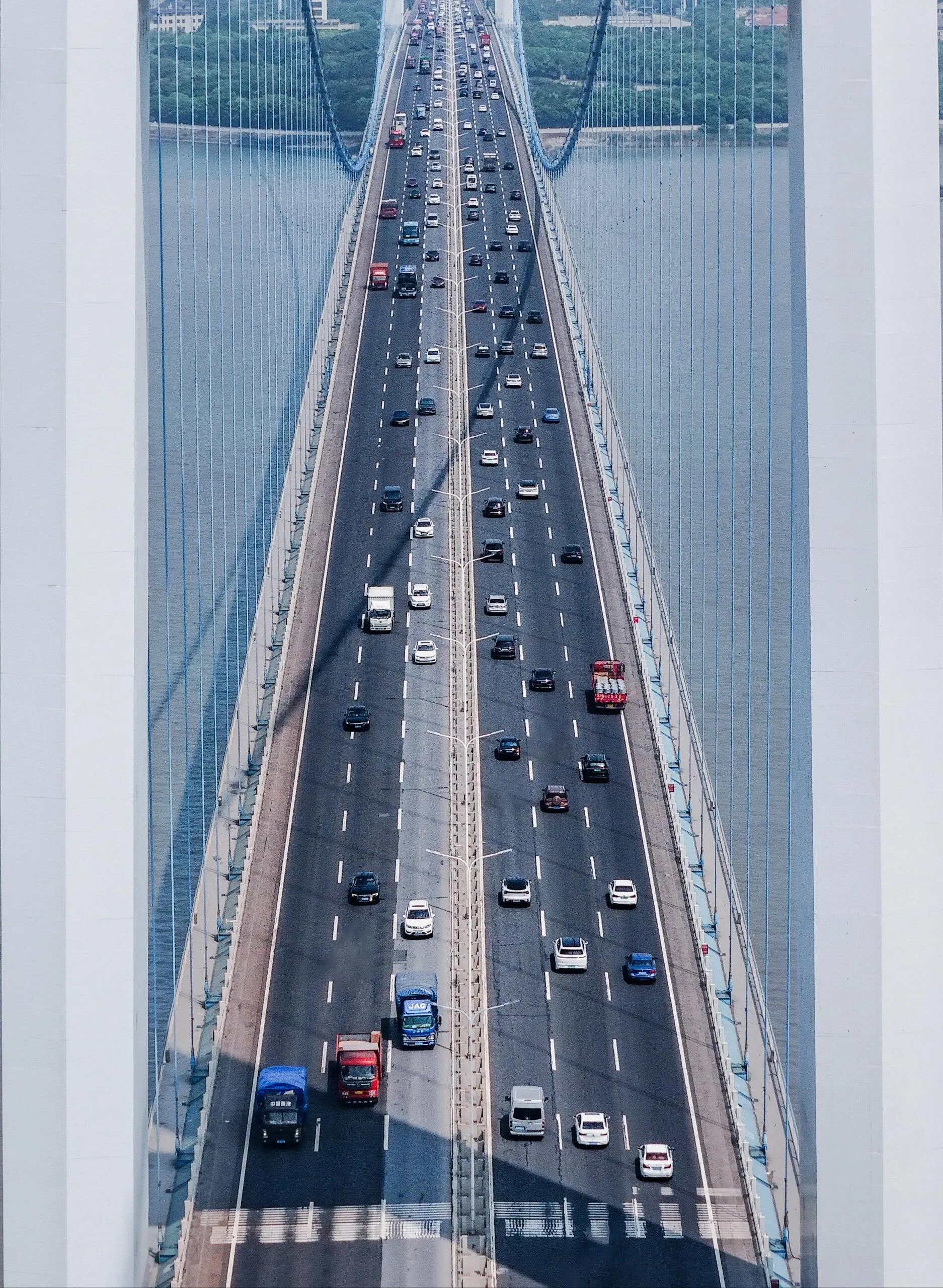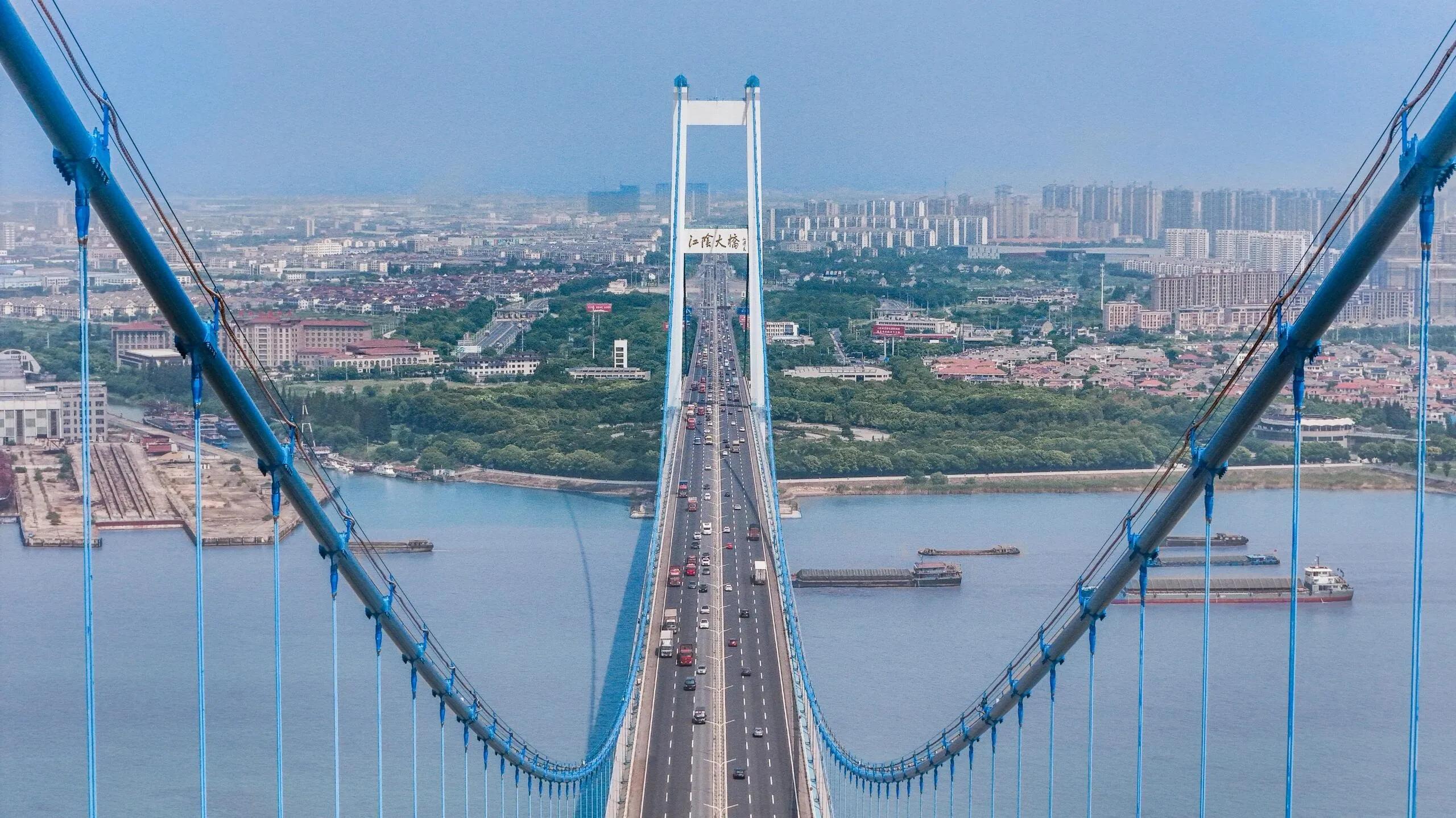 江阴长江大桥:船流不息,远望二号也在这里,壮观的景象令人叹为观止。