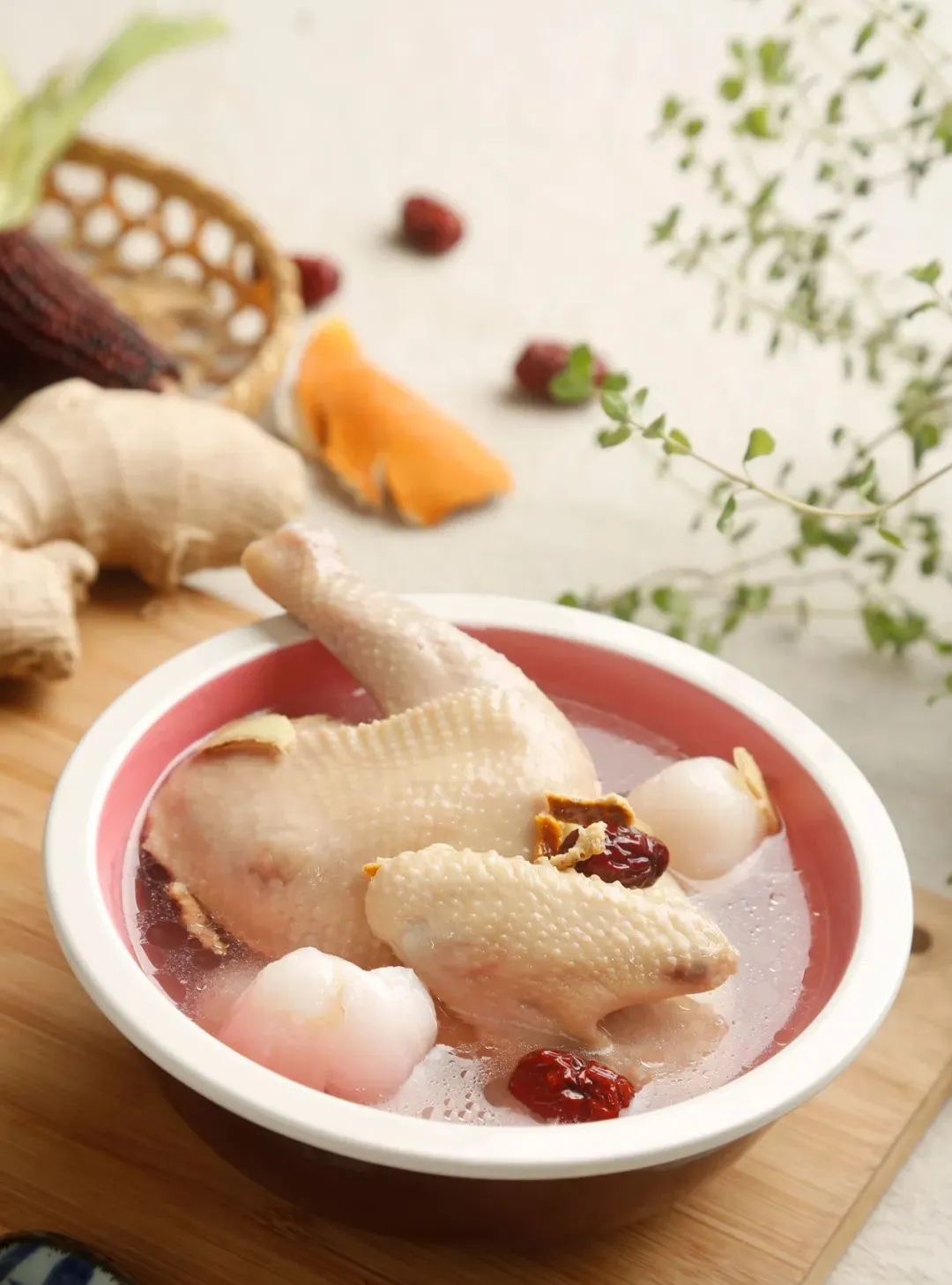但作为中国荔枝产量最大,风味最好的地区,广东人有着更多独特的荔枝吃法,比如用荔枝皮泡水,用荔枝肉煮鸡汤……