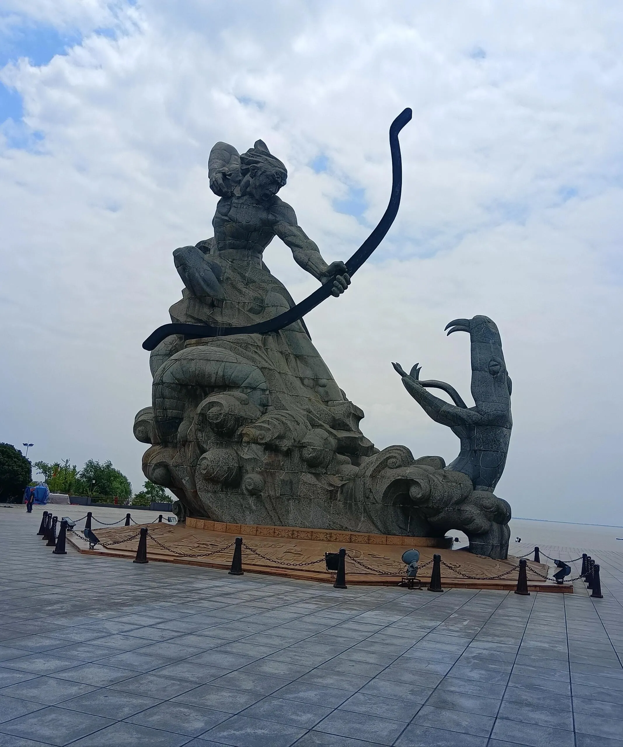 汴河街旁边就是巴陵广场。广场上有一座巨大的后羿射巴蛇雕像,诠释了岳阳“巴陵”称呼的来源。这里是岳阳的地标性广场,站在这里吹着风看着洞庭湖别有一番风情。晚上广场上还有很多人跳广场舞,非常热闹。