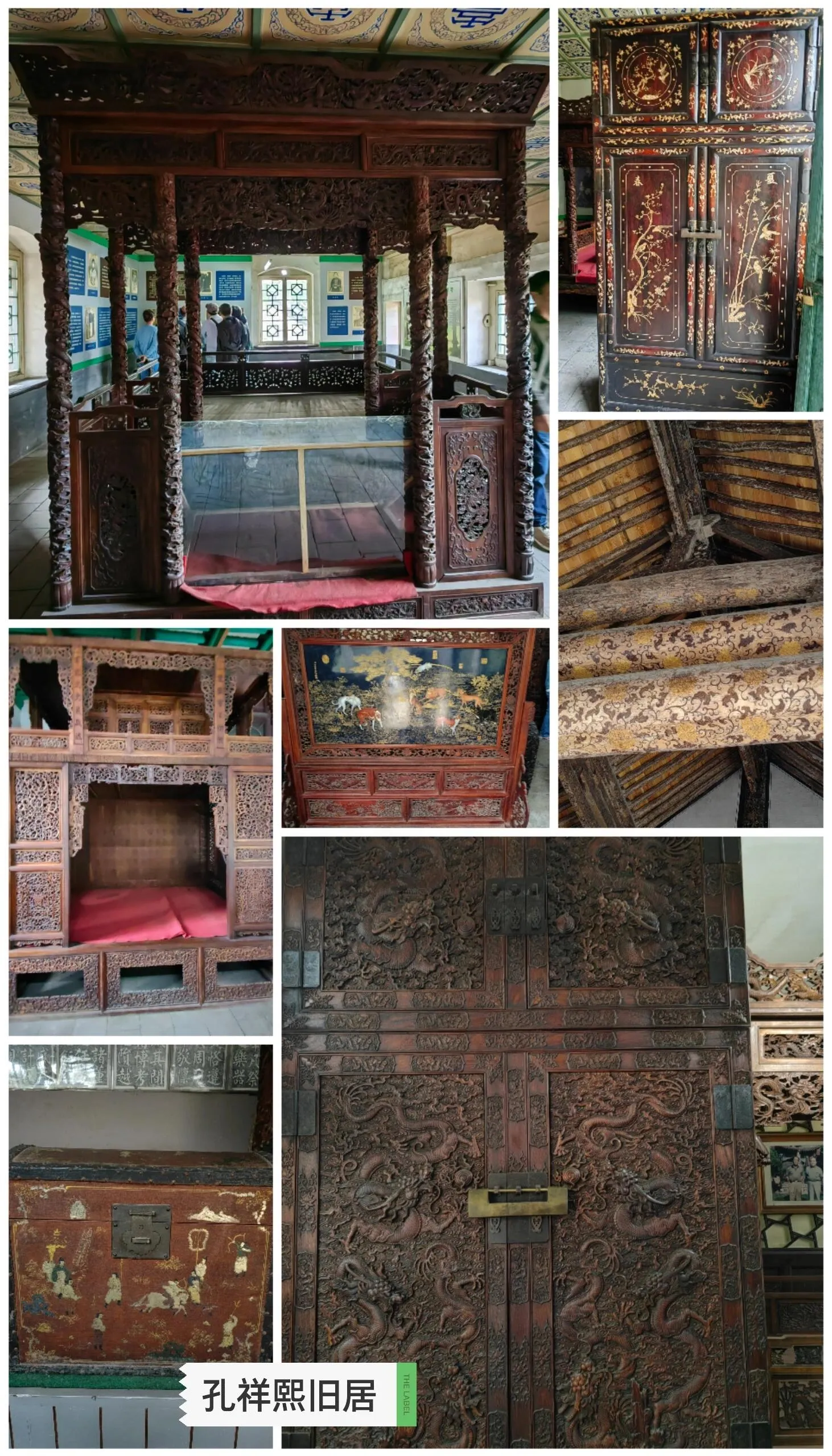 宅院原系太谷士绅孟广誉的老宅,建于清乾隆到咸丰年间,1930年为孔祥熙购得。在旧宅里面,主体建筑均使用斗拱飞椽,造形美观大方。木构部分雕梁画栋,沥粉堆金,宛似七彩虹霓,让人叹为观止!整座宅院里摆满了古董家具和装饰品,有精雕细刻的屏风、木门,还有紫檀木、乌木等名贵家具,值得一看!