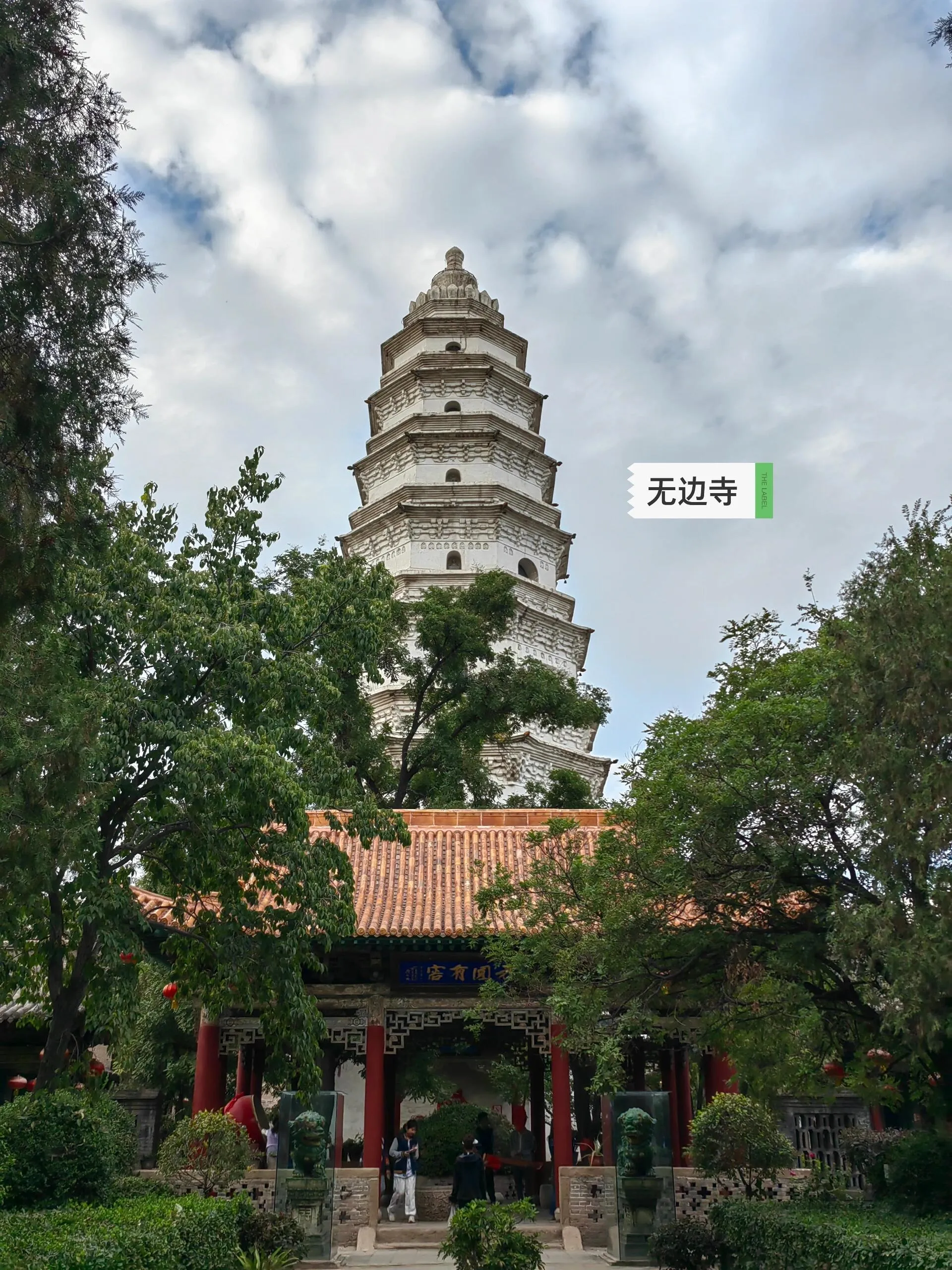 无边寺,位于山西省晋中市太谷区南寺街10号,创建于晋泰始八年(272年)。现存白塔是宋代建筑,观音殿于1997年复建,其他是明清建筑。白塔外有七层,内有九层,每层均有仿木的斗拱和门窗,据说之前可在塔顶可眺望太谷城。