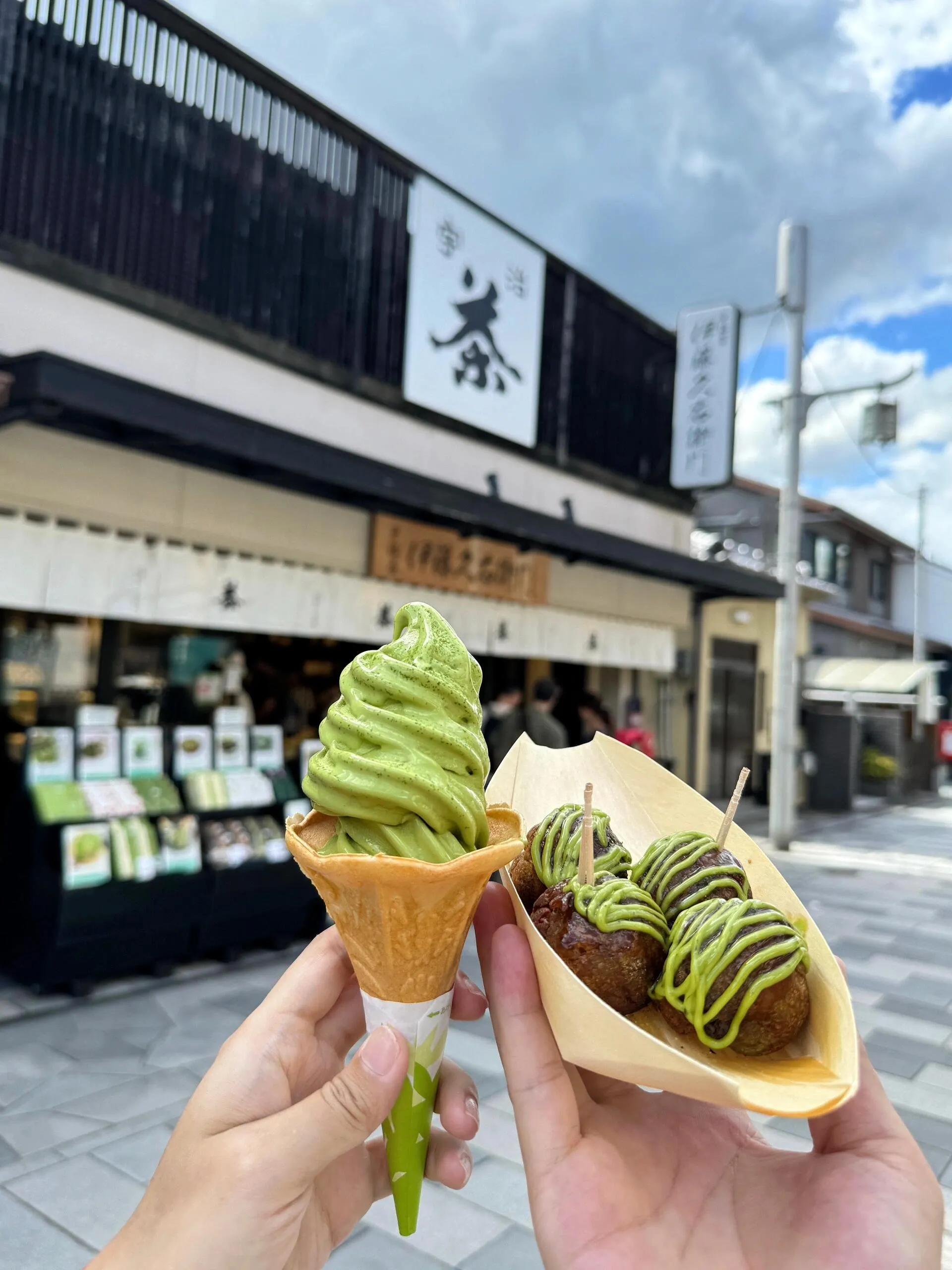 上午从难波站乘坐御堂筋线到淀屋桥(190日元),在淀屋桥乘坐京阪电车到中書島,换乘宇治线到宇治。在宇治的抹茶一条街享用午餐,可以去中村藤吉品尝下午茶,欣赏宇治桥景色。