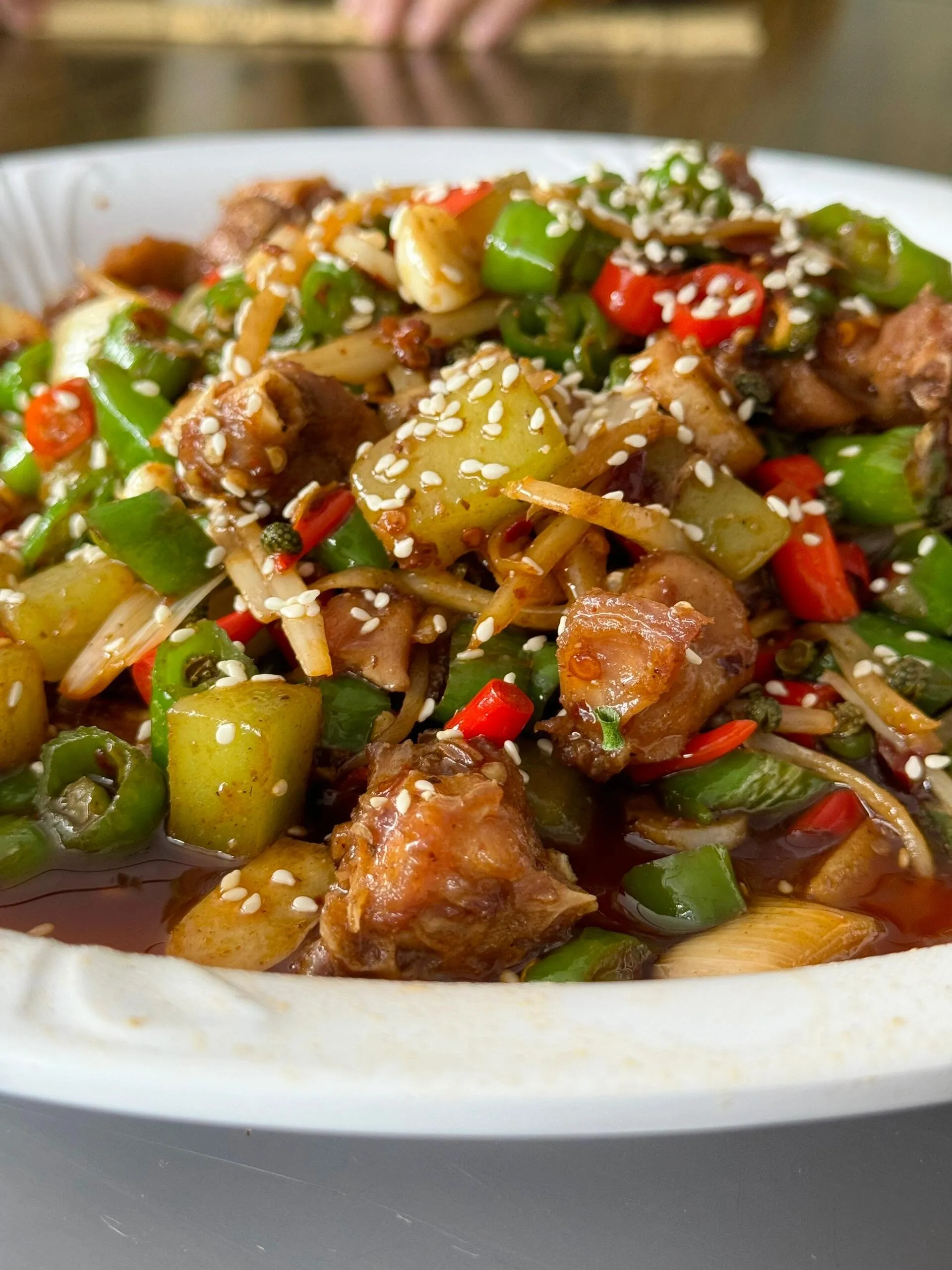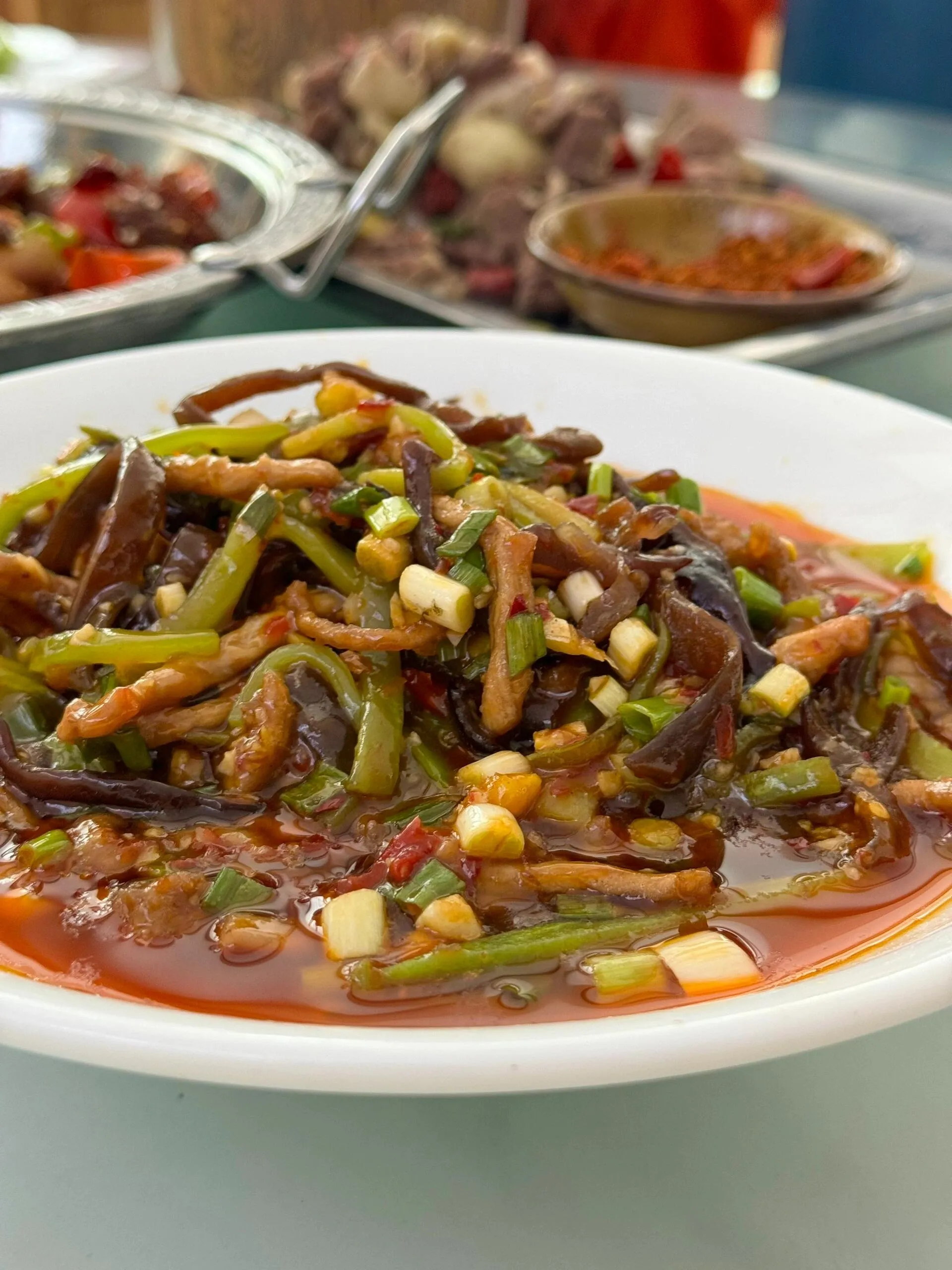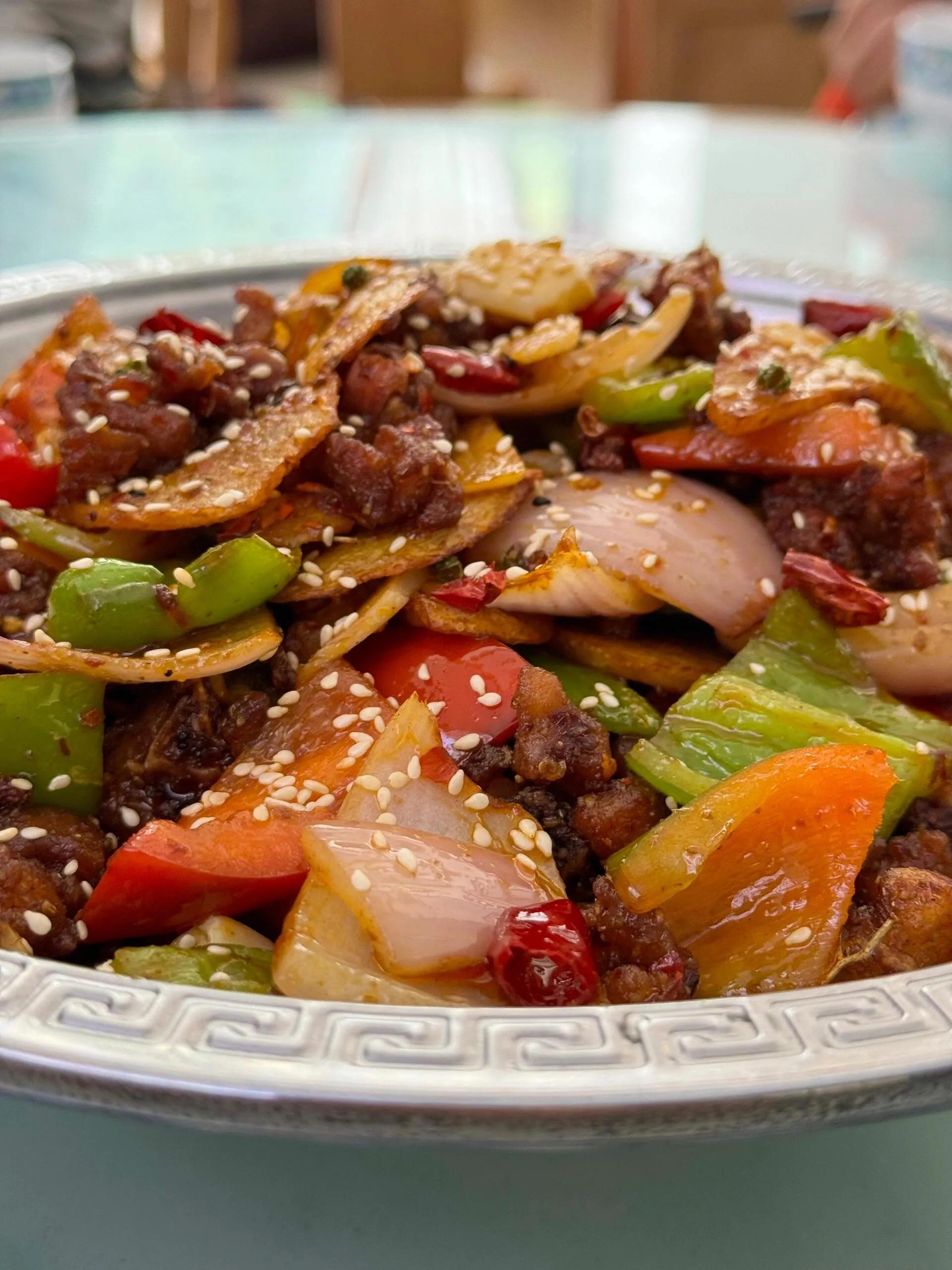 在这里我们去了食字路口餐厅(消费318元)。仔姜兔味道可以,但兔肉量不多。锅巴肉片是酸甜口,勾了芡汤汁浓稠,可以尝尝。其他菜品都比较一般。