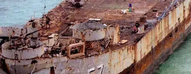 仁爱礁上的“马德雷山”号是菲律宾海军的一艘老旧登陆舰,由于年久失修,状况堪忧。