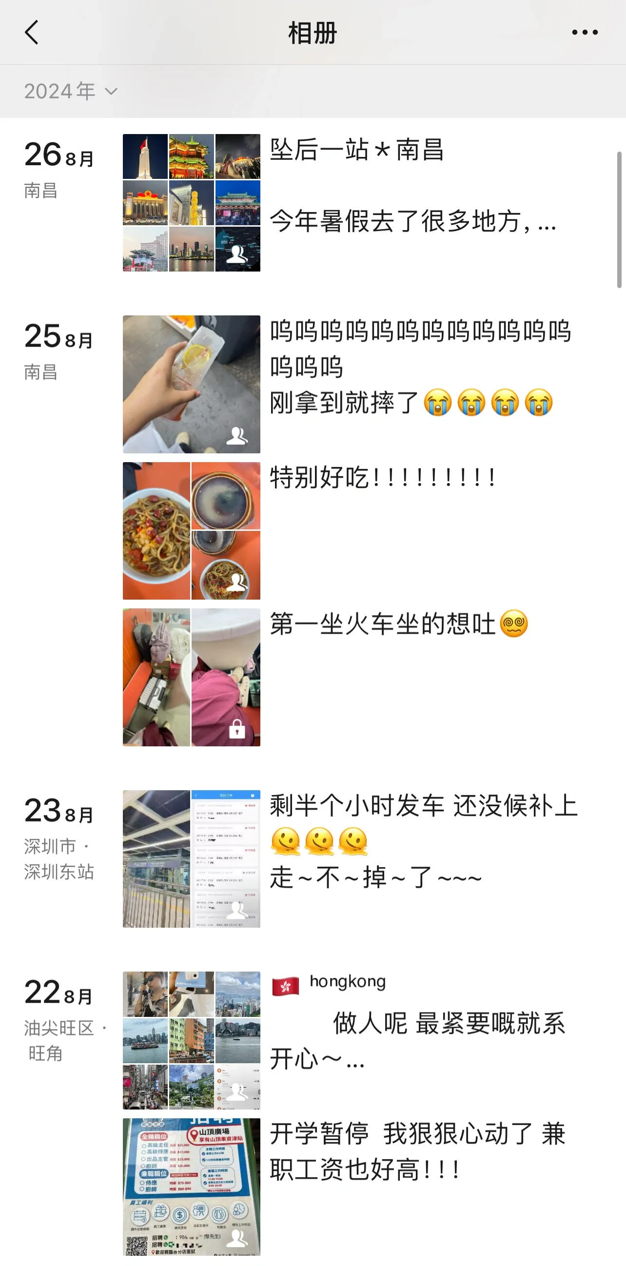 在饮食方面,没有过多奢侈,常与青旅小伙伴同行就餐,早午餐通常合并。旅行理念是“该省则省,该花则花”,也会体验当地特色项目,如花100多元吃重庆火锅。