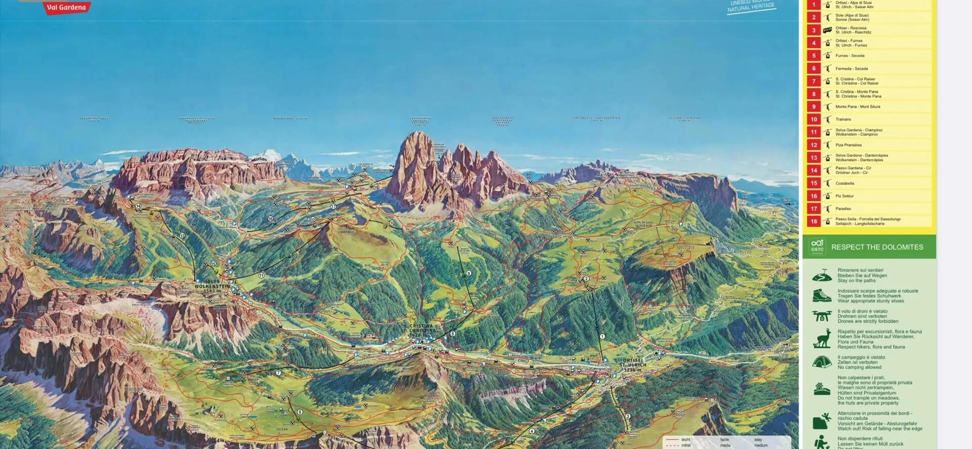 Val Gardena位于多洛米蒂山脉西部,是一个风景如画的山谷。这里的缆车系统四通八达,让游客能够轻松欣赏到壮丽的山景。以下是一条覆盖谷内三个小镇的缆车路线,让你在一天之内尽览Val Gardena的美景。