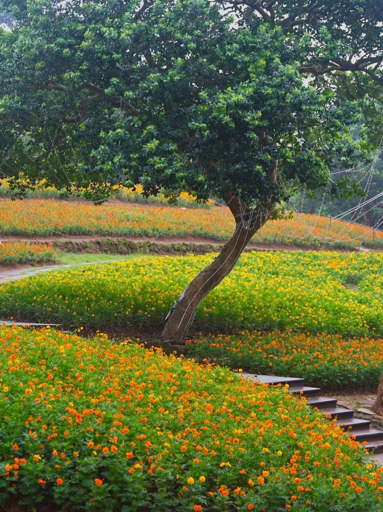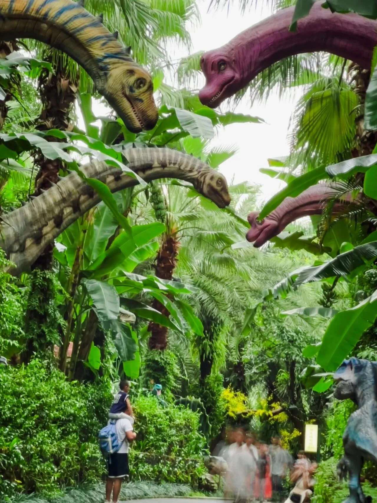 拍完王莲后,不妨前往绚兰花田 。现在正是黄秋英和绣球花盛开的季节,美不胜收。再往下走就是兰园大草坪的恐龙世界,仿佛置身于侏罗纪时代,孩子们玩得不亦乐乎。