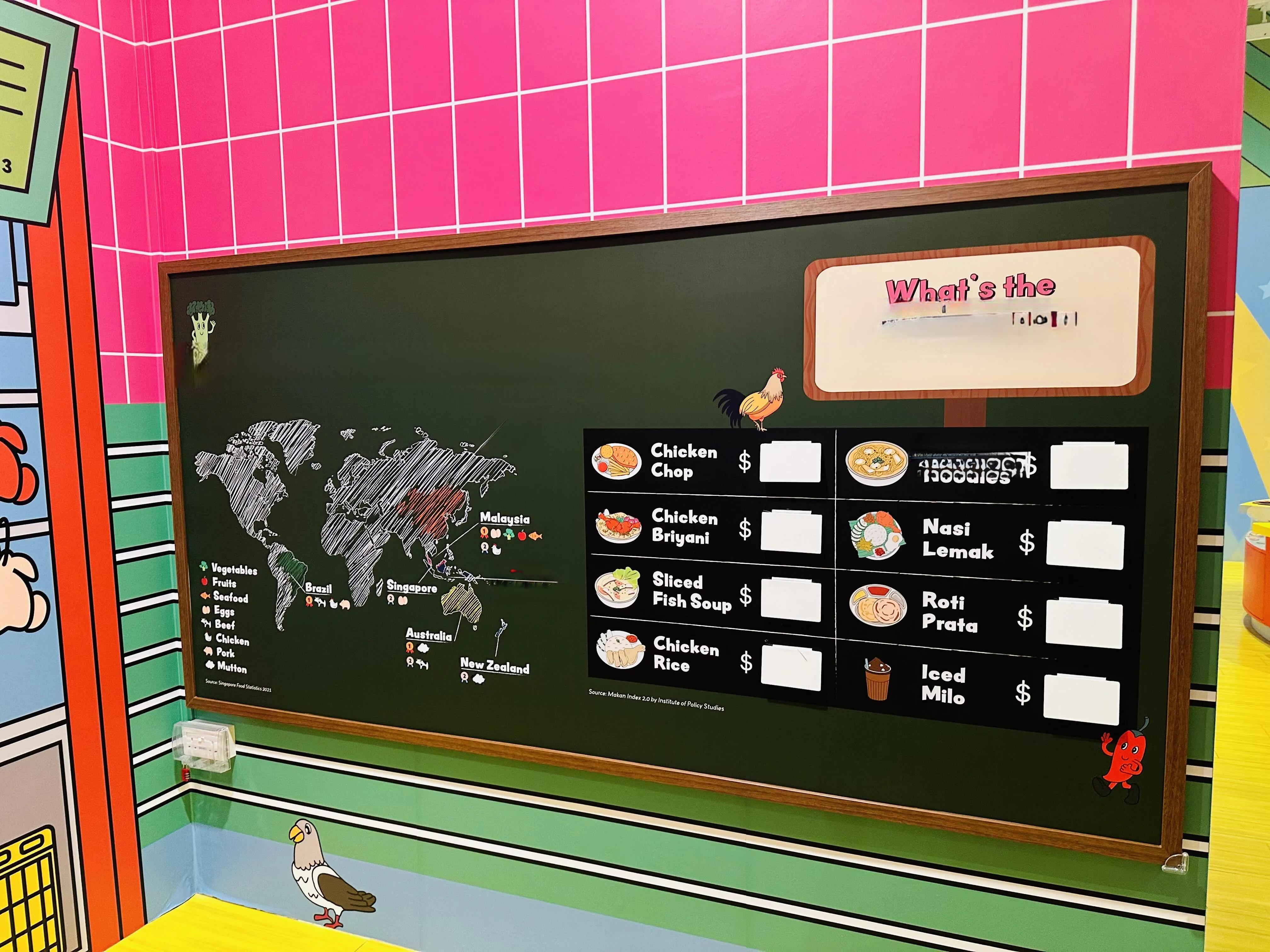 博物馆的墙上展示了新加坡食物的来源和市场价格,以及每年浪费的食物重量。这些信息帮助孩子们将所学与现实生活建立联系,同时培养节约、爱惜粮食的品质。
