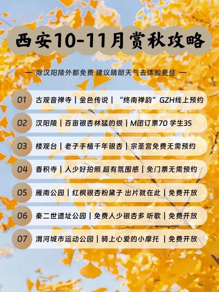 特色:寺内有一棵据说是李世民手植的银杏树,已有1400多年历史。秋季是西安的顶流景点,人气爆棚。一树千叶笑万人,人比叶多欲断魂。