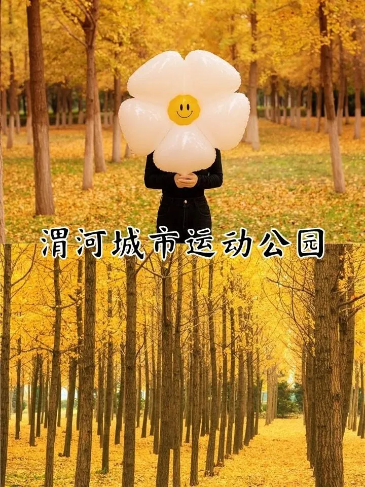 特色:不要直接导航渭河城市运动公园,因为公园很大,容易找不到银杏林。建议走尚林路到草滩七路路口附近停车,然后沿草滩七路步行500米至河堤路即可进入银杏林。注意附近没有厕所。