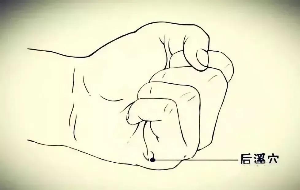 后溪穴是小肠经上的一个穴,把手握拳,掌指关节后横纹的尽头就是该穴。