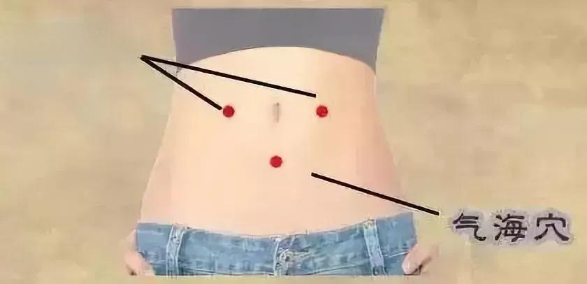 气海穴位于下腹部,肚脐与耻骨上方连线处,从肚脐向下一寸半的位置。