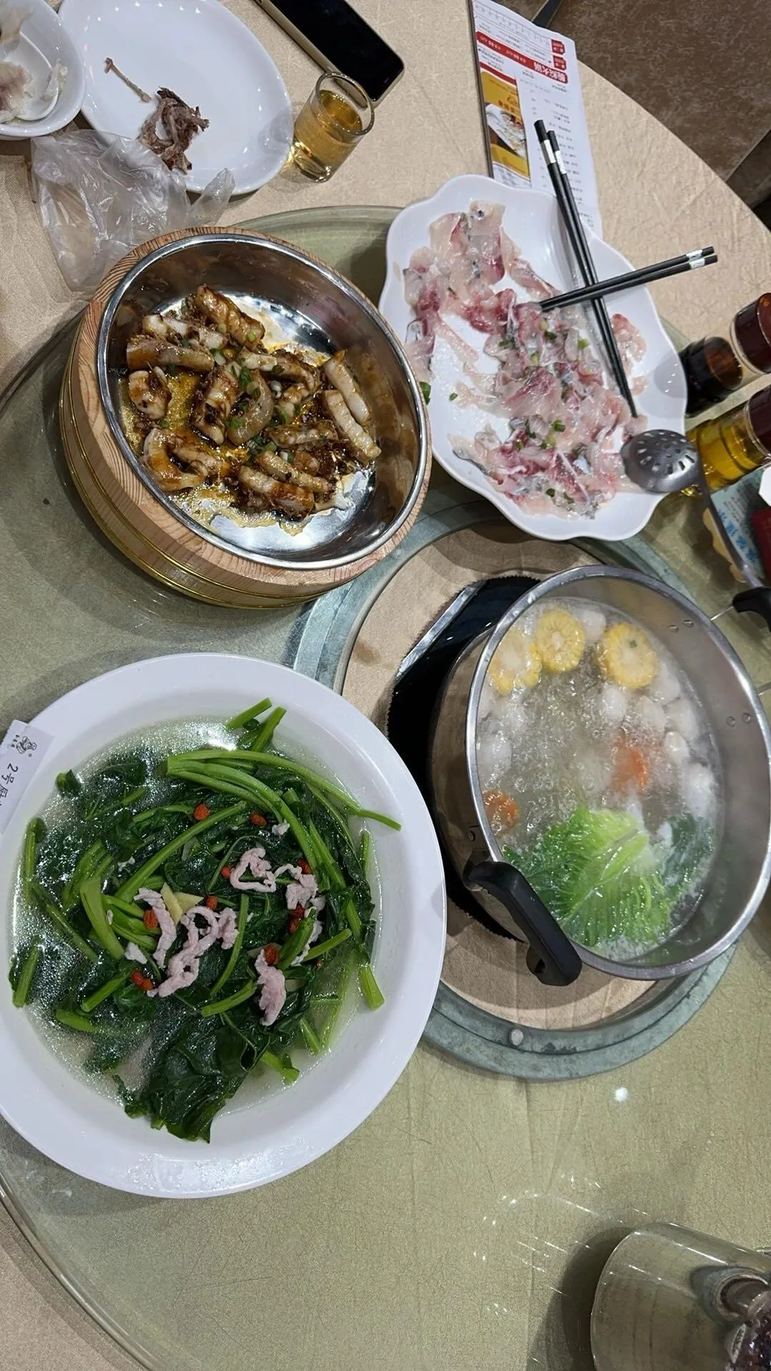 抵达中山后,首站是著名的红日饭店享用午餐。这里的招牌菜脆肉鲩火锅值得一试,鱼肉外脆里嫩,搭配特色蘸料,口感极佳。