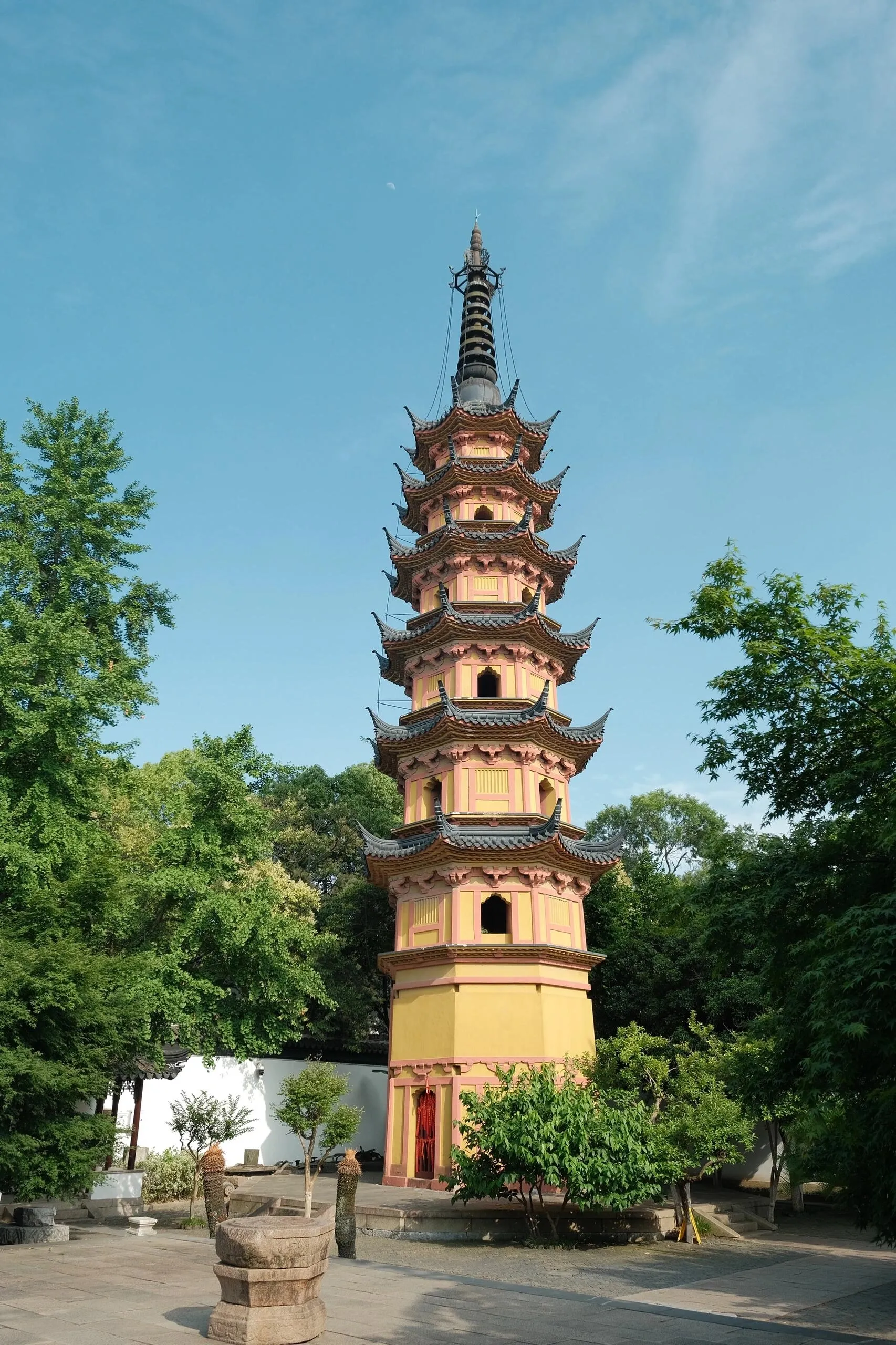 定慧寺巷是一条历史悠久的古巷 ,保留了唐宋以来的诸多古迹。其中最引人注目的是 罗汉院双塔 。这对塔身瘦长秀颀,七层八面楼阁式,东西比肩并立,形式、结构、体量相同。塔身仿木结构,二层以上施平座、腰檐,腰檐翼角挑起,自下而上逐层收缩,整体造型玲珑纤秀。