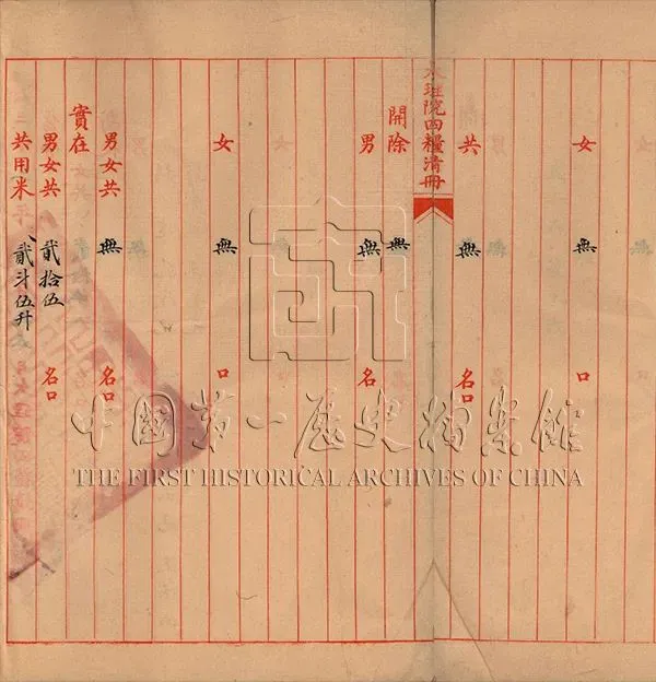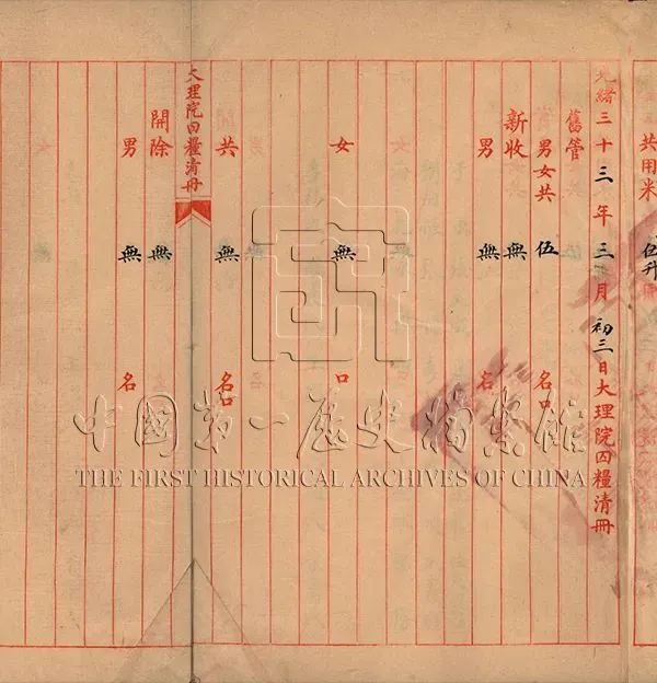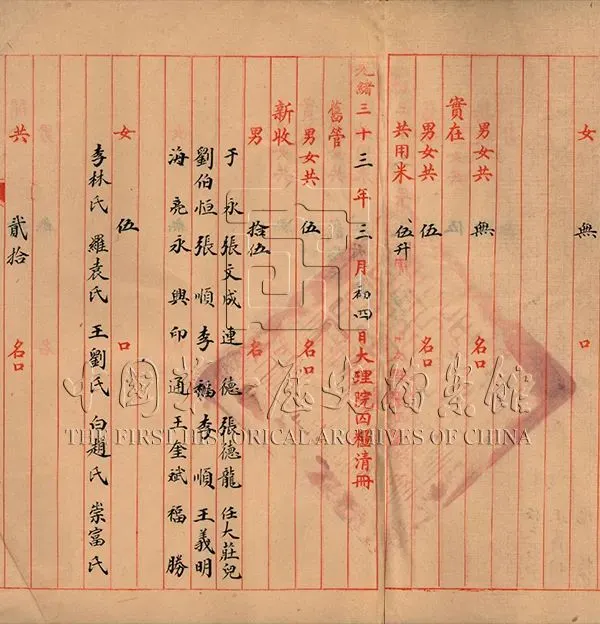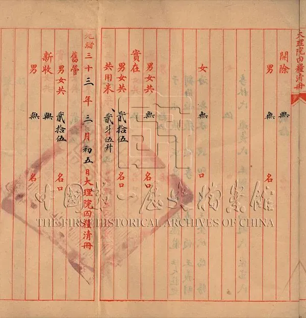 ❖ 大理院光绪三十三年三月份造大理院看守所囚粮清册(局部)