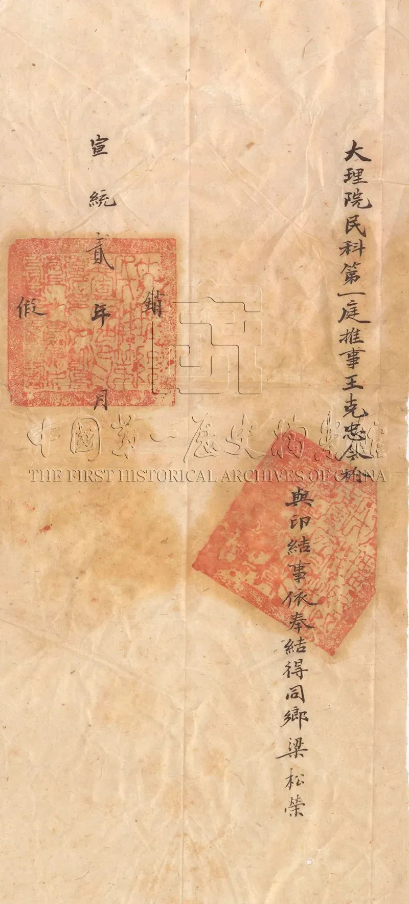 ❖ 大理院民科第一庭推事王克忠为依奉结得同乡梁松荣事印结