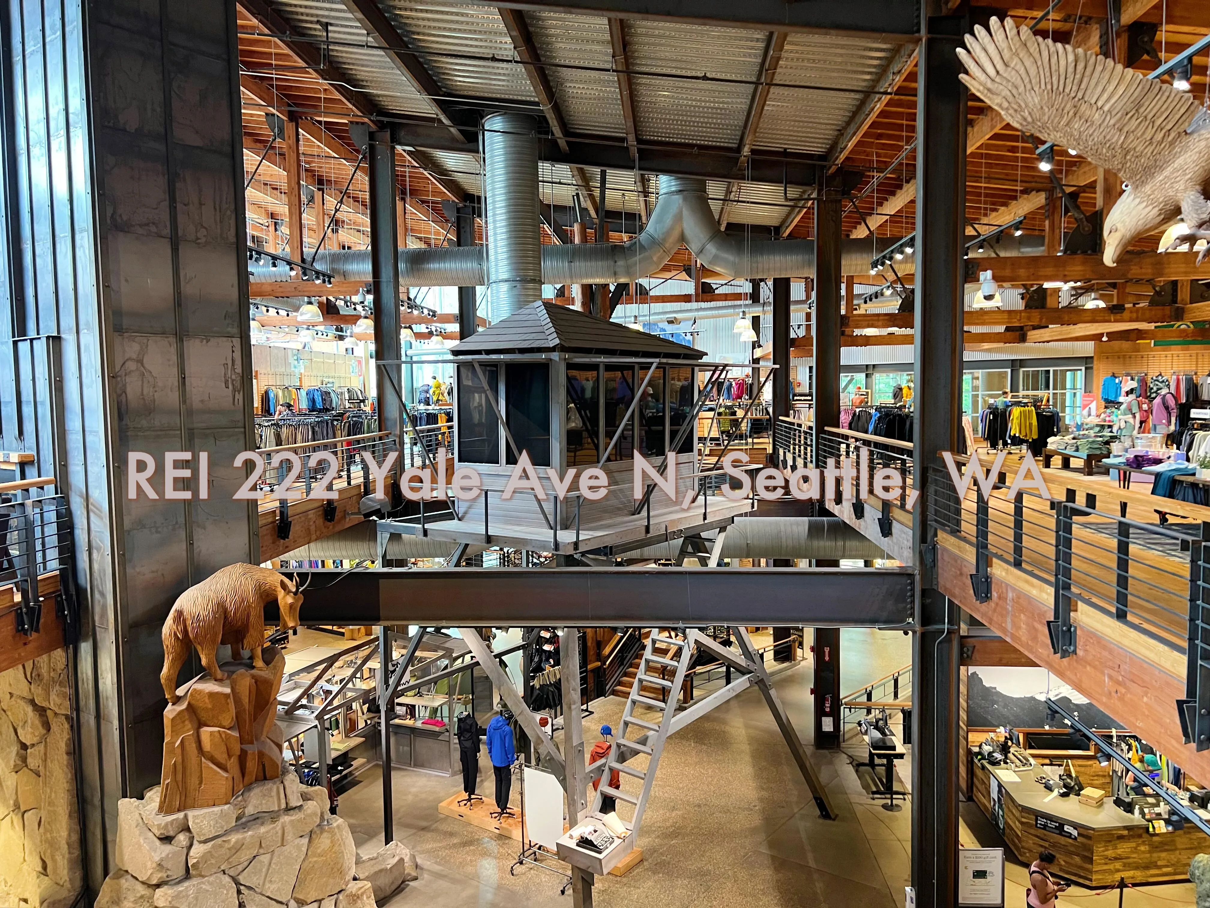 REI和对面的Brunch: REI位于222 Yale Ave N,有三层可以逛。它就像一个微观的户外生态世界,让你可以探索不同类型的户外运动,还有很多巧妙的设计将各种户外元素融入其中,逛起来身心愉悦。对面是一家德国餐厅,整体偏甜,但餐厅本身很漂亮。