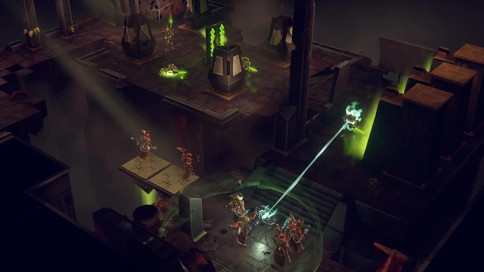 游戏的核心玩法是回合制战术战斗,但与传统的回合制游戏不同,《战锤40,000:机械神教》引入了独特的行动点系统。玩家可以通过击杀敌人、拾取战场上的电池等方式获取Cognition Points(认知点数),从而在单个回合内执行更多操作。这种设计不仅增加了战斗的灵活性,也让玩家能够体验到类似即时战略游戏的快节奏战斗。