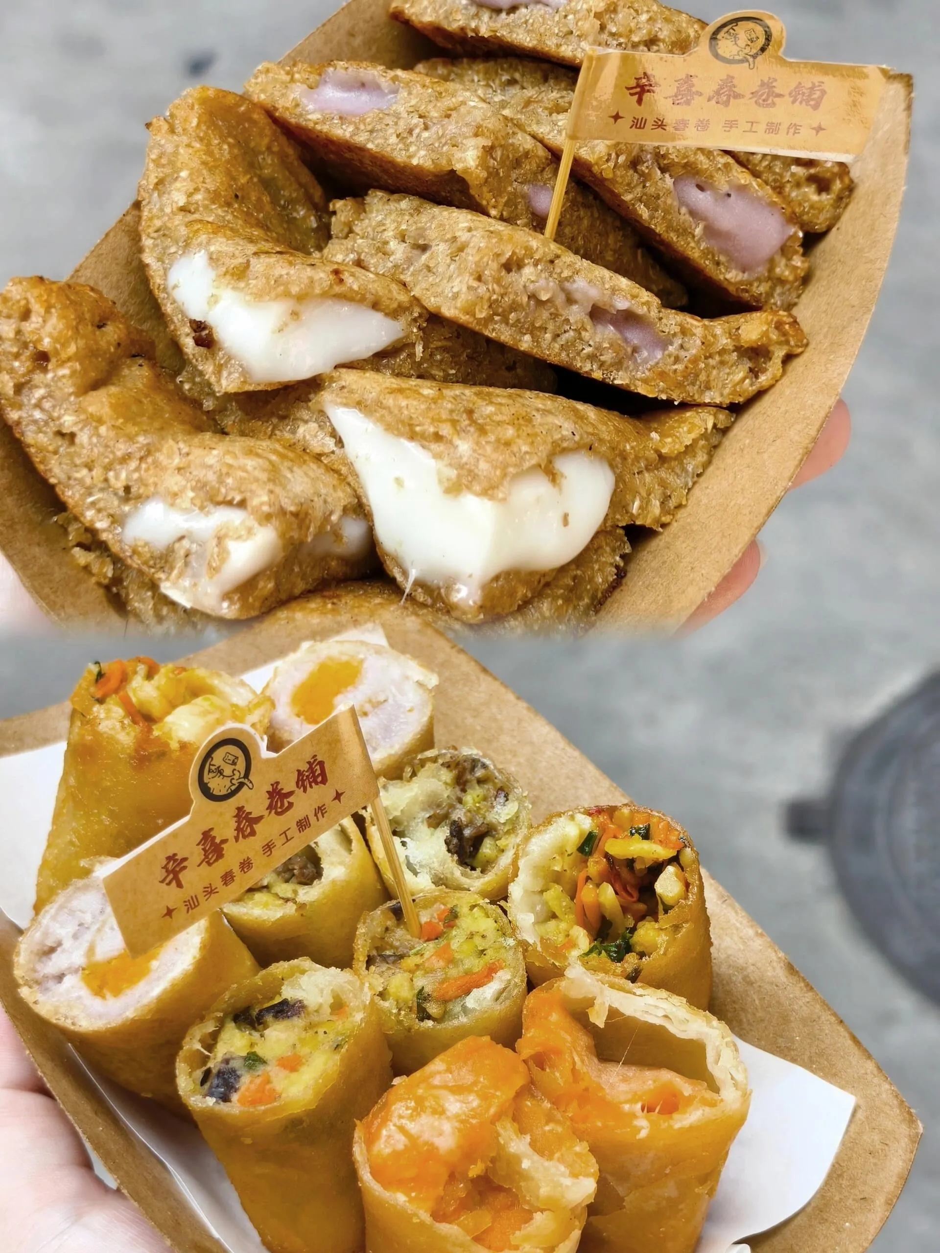 老潮兴的糯米制品值得回购 ,无论是甜味还是咸味的馅料都很出色。辛喜春卷铺的芋泥和番薯春卷值得一试,烙麦饼也很美味。