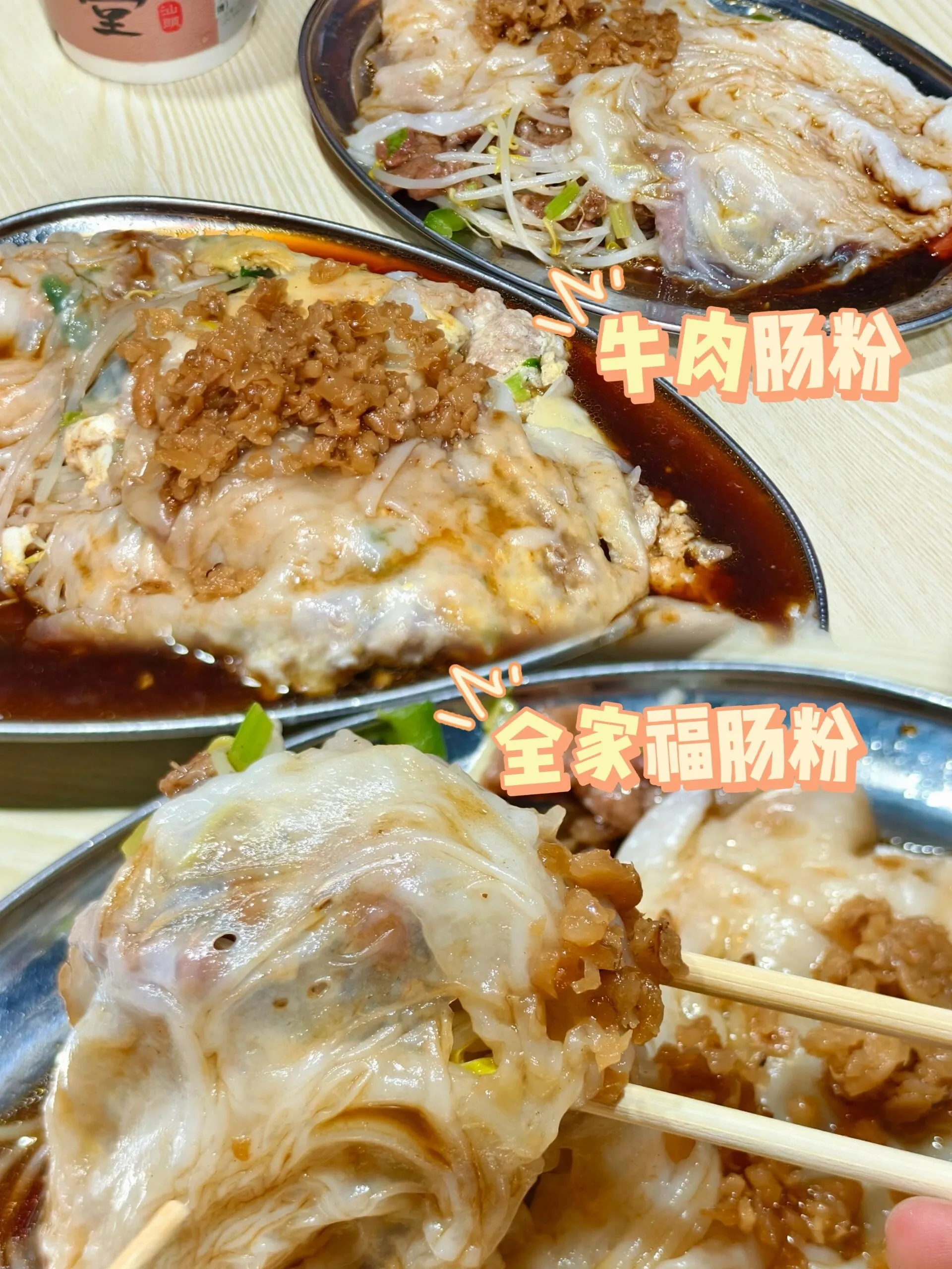 三姐妹肠粉是必去的美食店之一 。全家福肠粉和牛肉肠粉都值得一试,尤其是牛肉肠粉,粉质弹牙,牛肉鲜嫩。在店门口还有本地人摆摊卖炸豆干和无米粿,可以来个双拼尝尝。