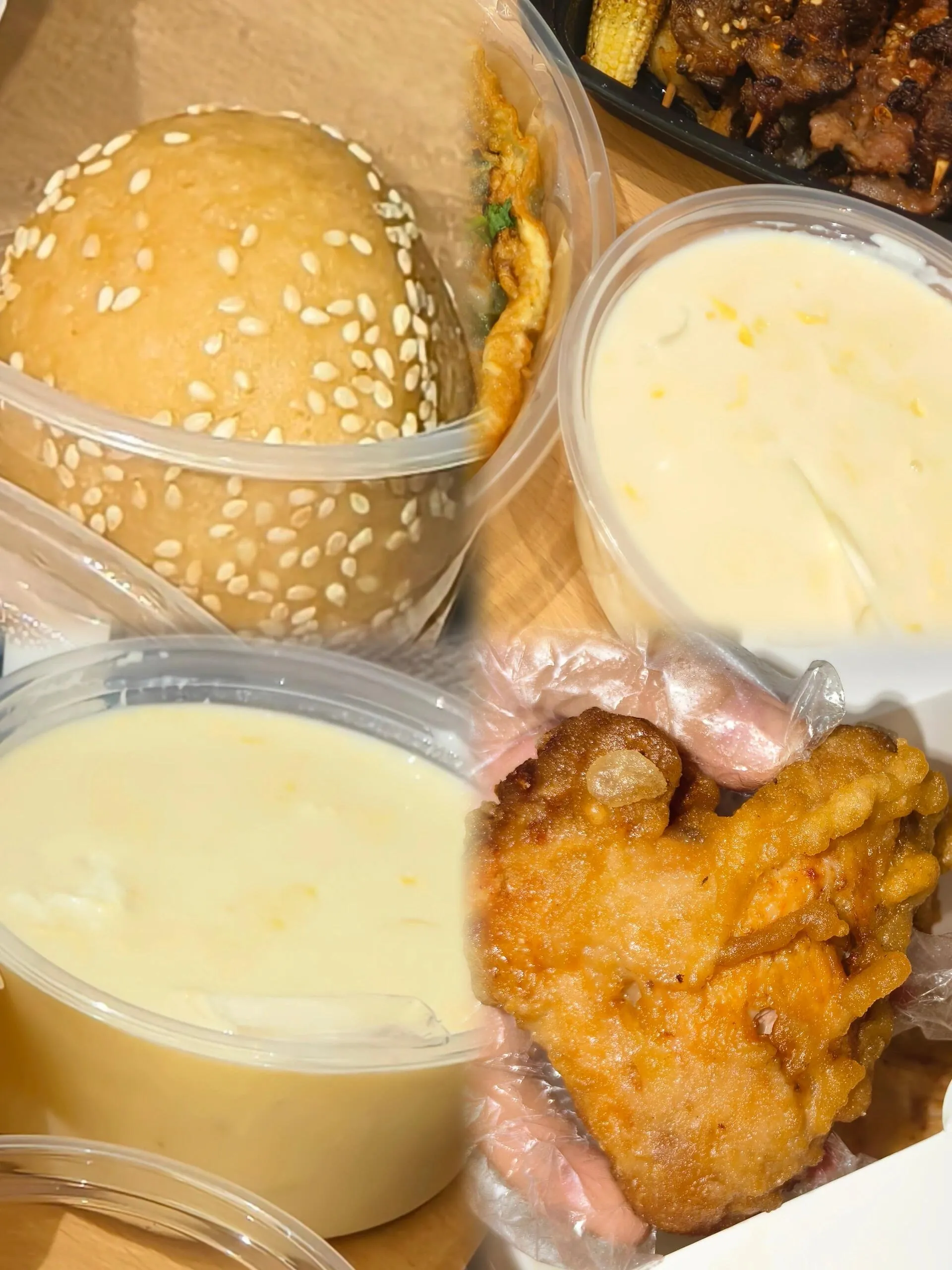 最后,还尝试了一些外卖美食 。其中蚝烙特别推荐,口感和味道都很出色。老牌福记加浓豆浆虽然不是很甜,但口感浓郁。腐乳鸡翅则保持了经典的口味。