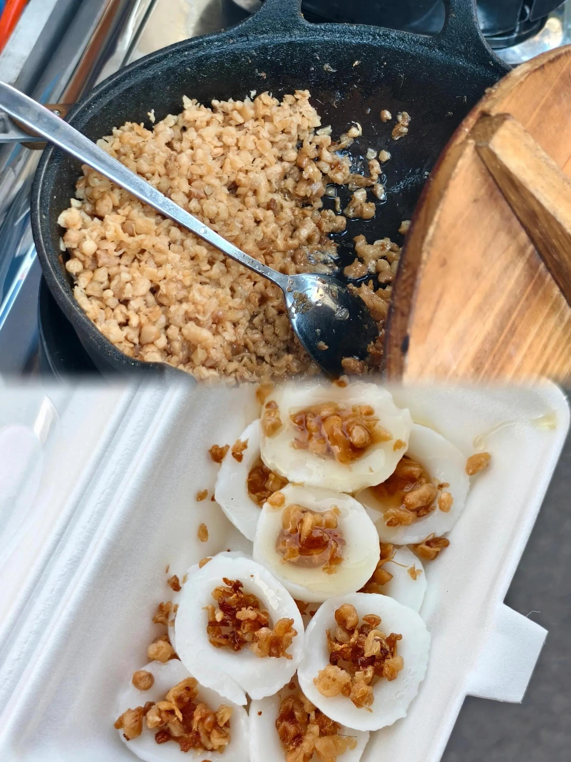 接着品尝了路边摊的水粿 ,这是一种传统的潮汕小吃。水粿搭配麦芽糖,口感独特,麦芽糖的甜度恰到好处,不会过于甜腻。