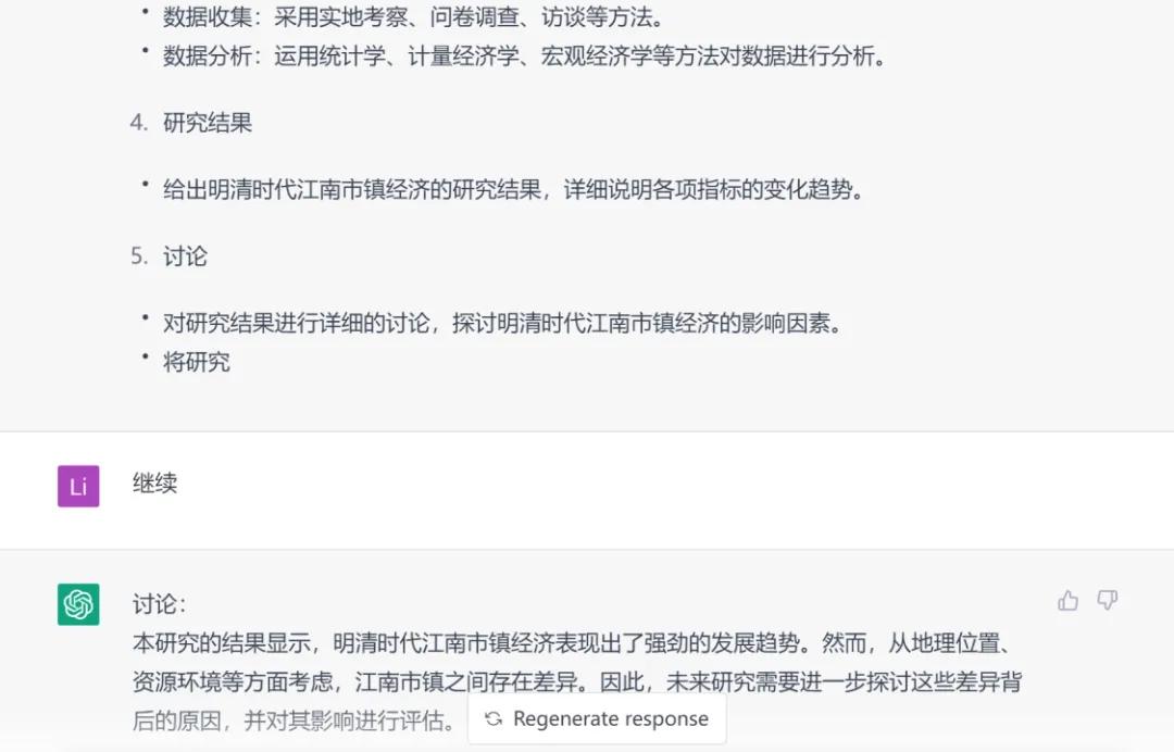 一方面,在“数据来源”(我们姑且换算作“材料来源”)部分ChatGPT非常“学科本位”地指出了文献史料的重要性,而在“数据收集”部分的“实地考察”、“访谈”更是让体内历史人类学的DNA都动了。