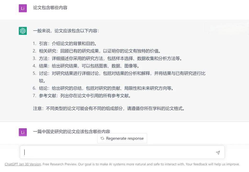 因此,在使用时不宜直接要求其“写一篇论文”,而应当先发问“论文包含哪些内容”,并在建立基本结构后再进行作文要求。