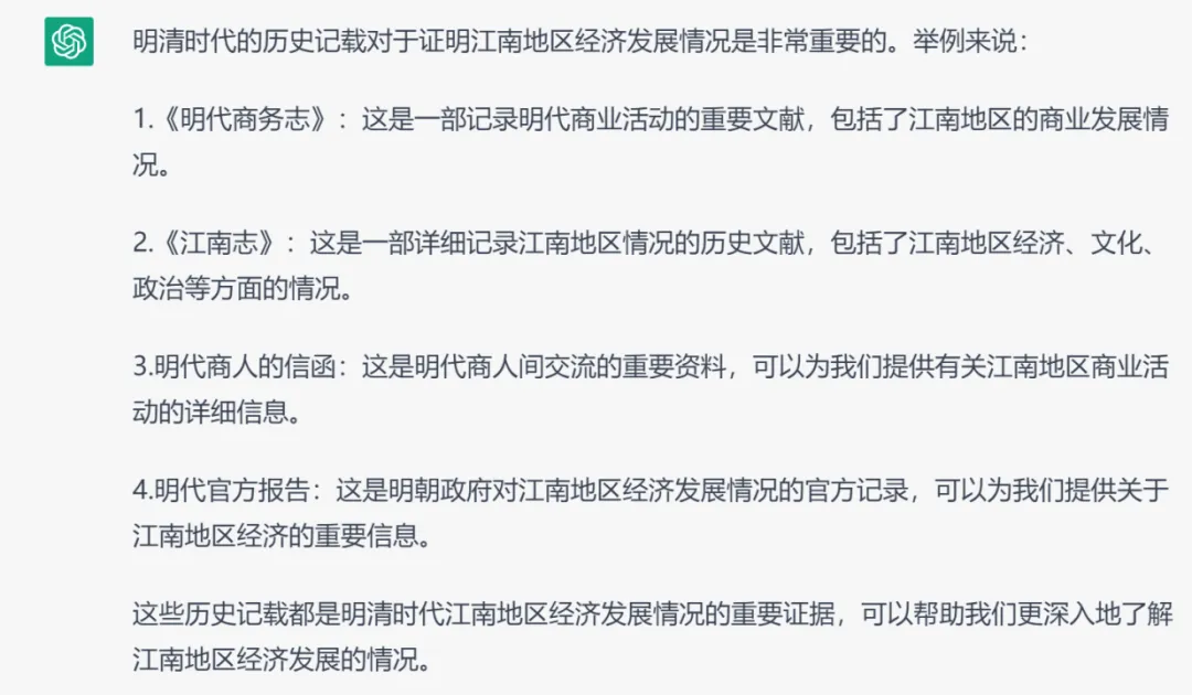 但另一方面,《明代商务志》和《江南志》又是什么东西?作为研究方向既非明清史又非江南地方史的小白,一开始完全被唬住了,并尝试要求AI提供直接的内容支持: