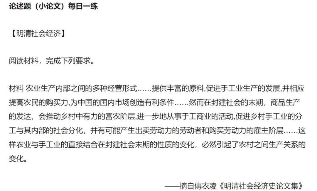 在看到这个回应时的第一反应是——这不是高考历史论述题的标准写法吗?譬如一道同样选择了傅衣凌先生论著作为材料的题目所给出的答案是这样的: