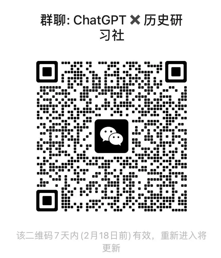 欢迎对ChatGPT✖️历史学感兴趣的朋友加入粉丝群,一起聊聊你的看法。