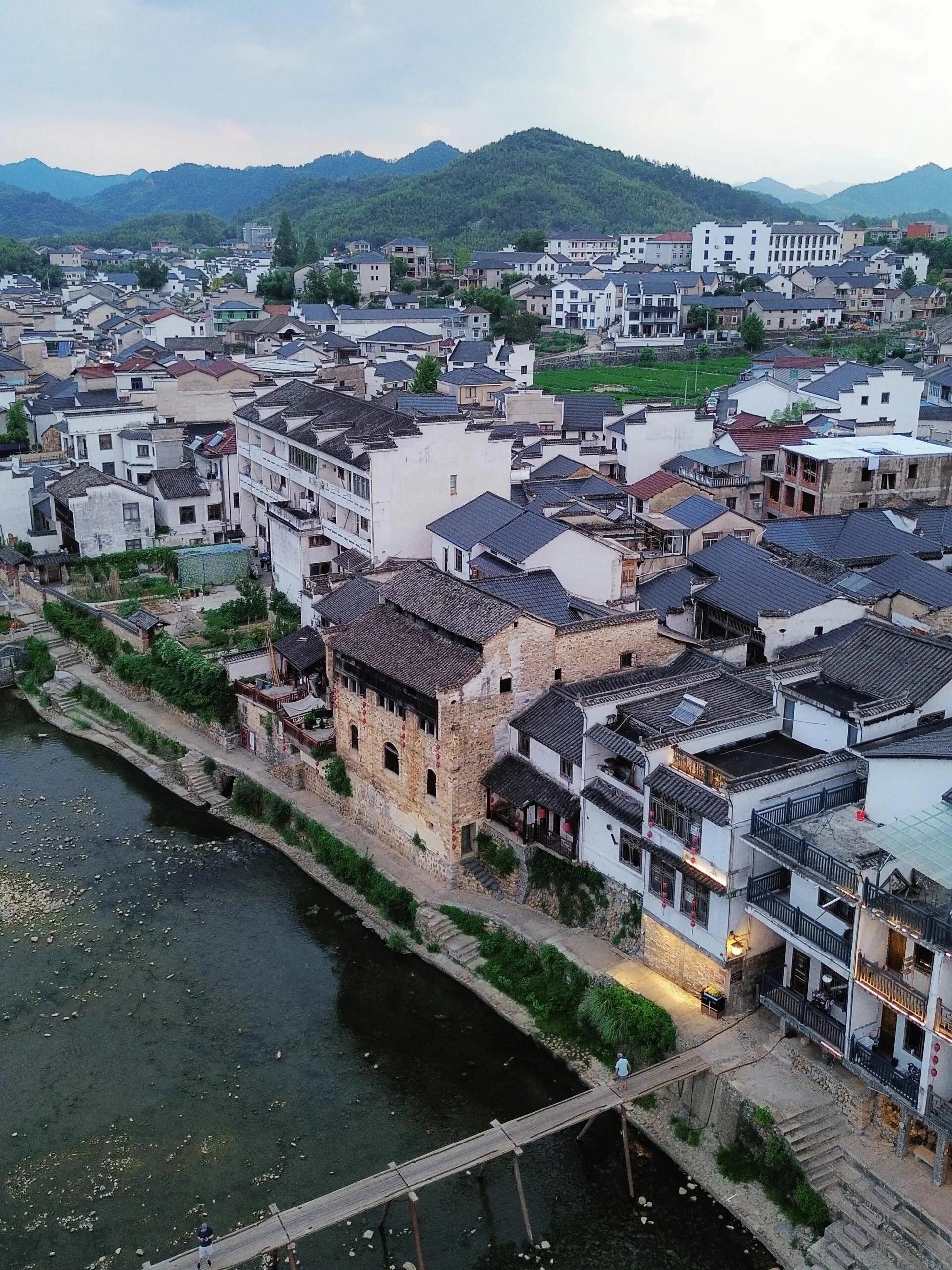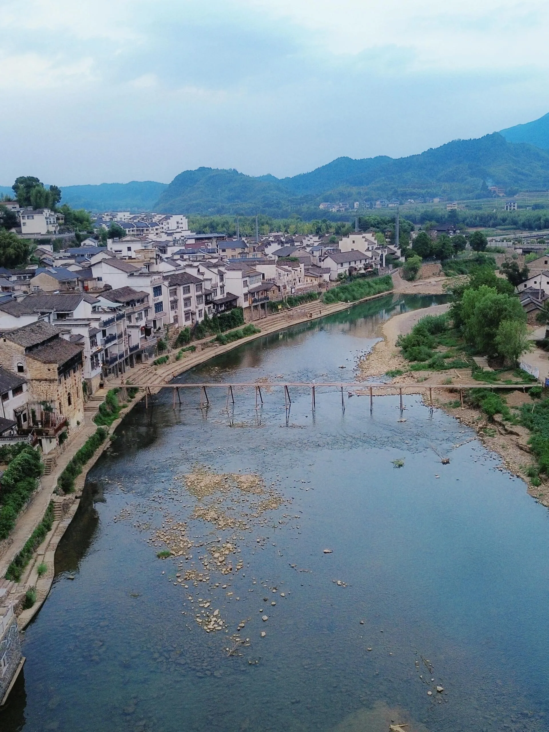 晚上可以选择住在河桥古镇。 这里有一座木桥,适合让狗狗在水中玩耍。镇上还有其他的狗,但它们都很友好,不会打架。