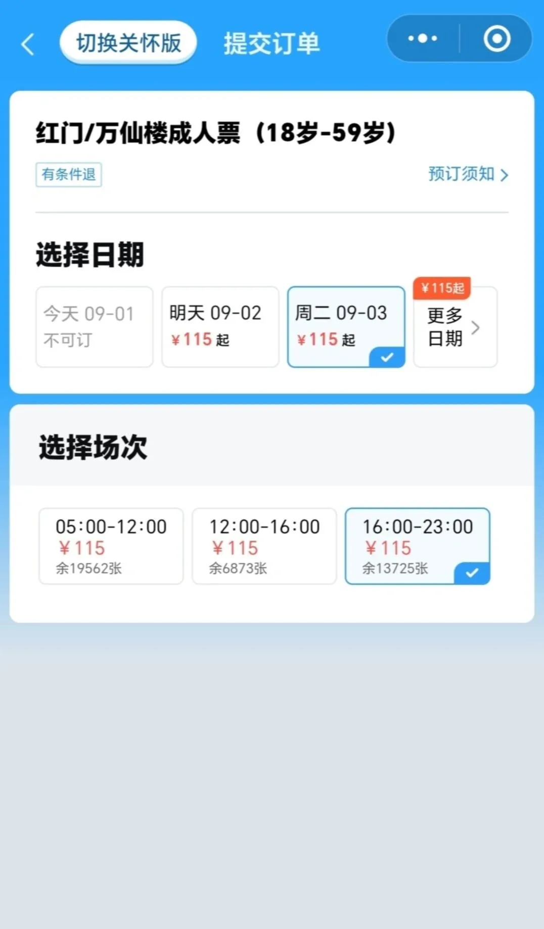 门票购买:
