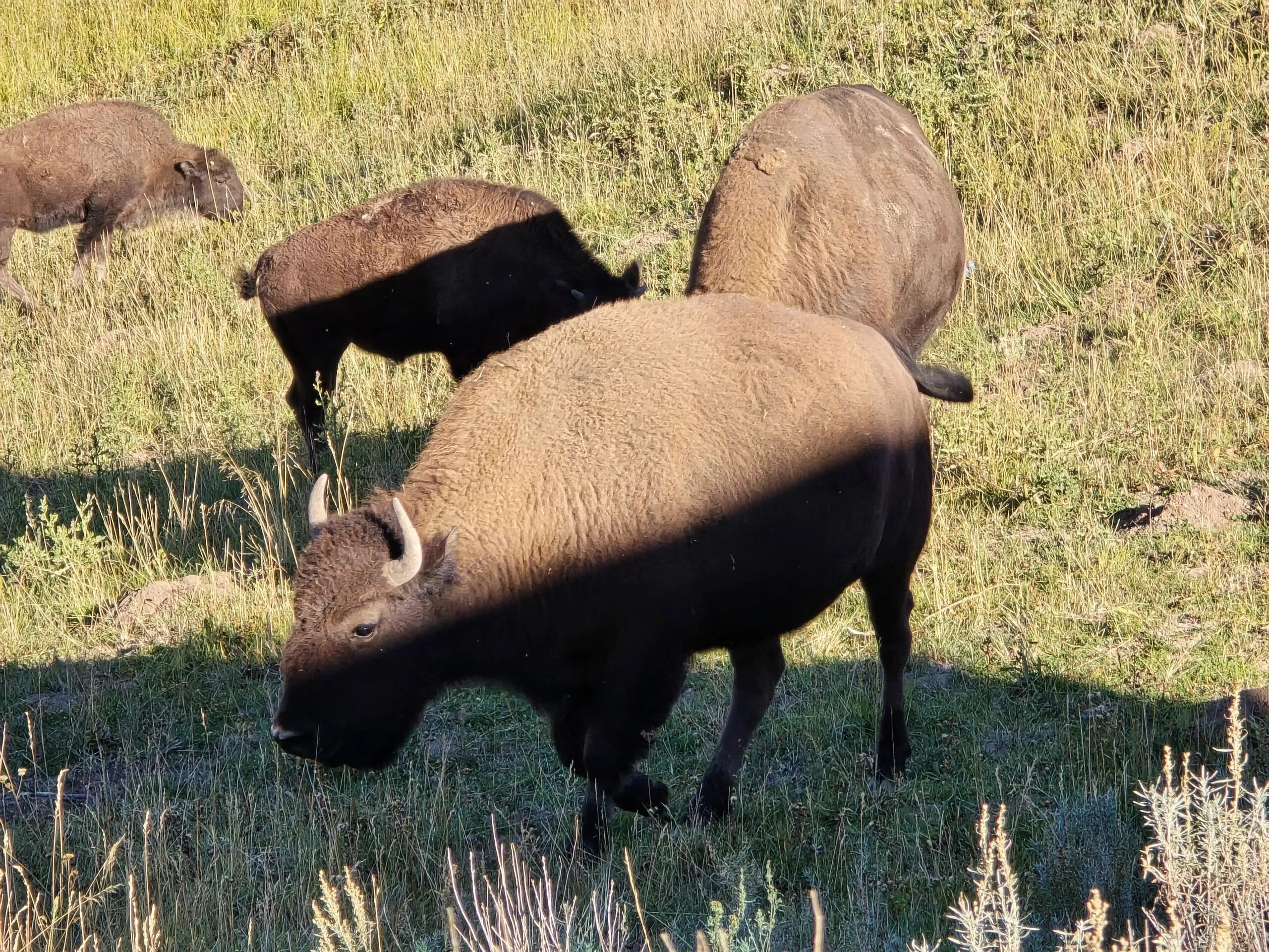 最令人兴奋的是在海登谷邂逅野牛群 。有些野牛甚至靠近停车区,近距离观察这些庞然大物既刺激又令人敬畏。晚上在黄石湖酒店享用简餐。虽然住宿条件较为简陋,没有Wi-Fi,但能欣赏到璀璨的银河,也算是意外惊喜。