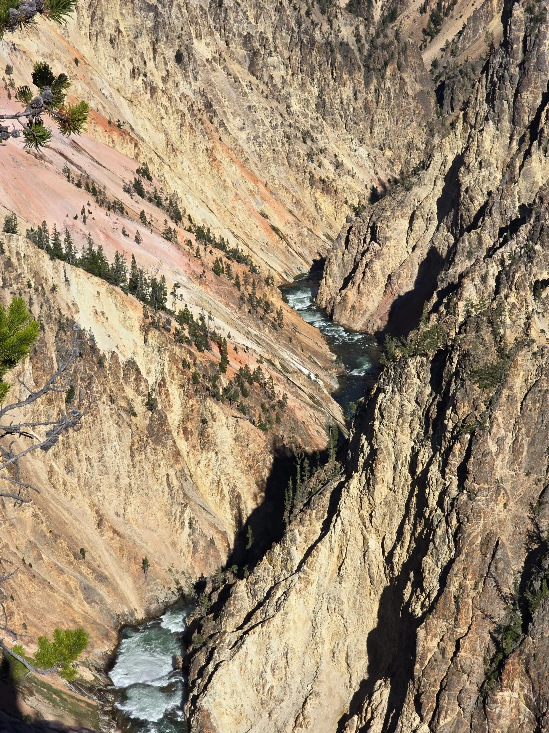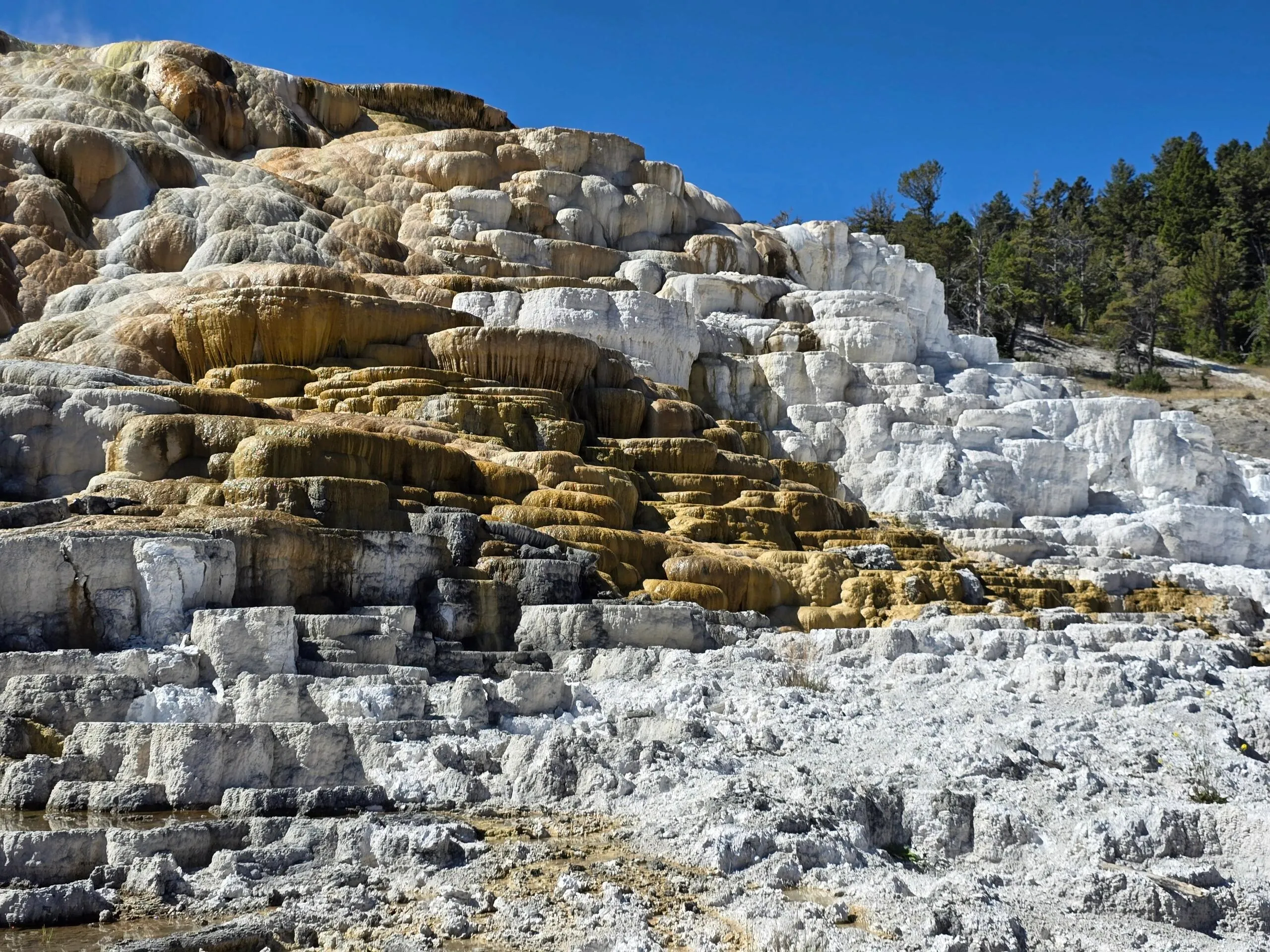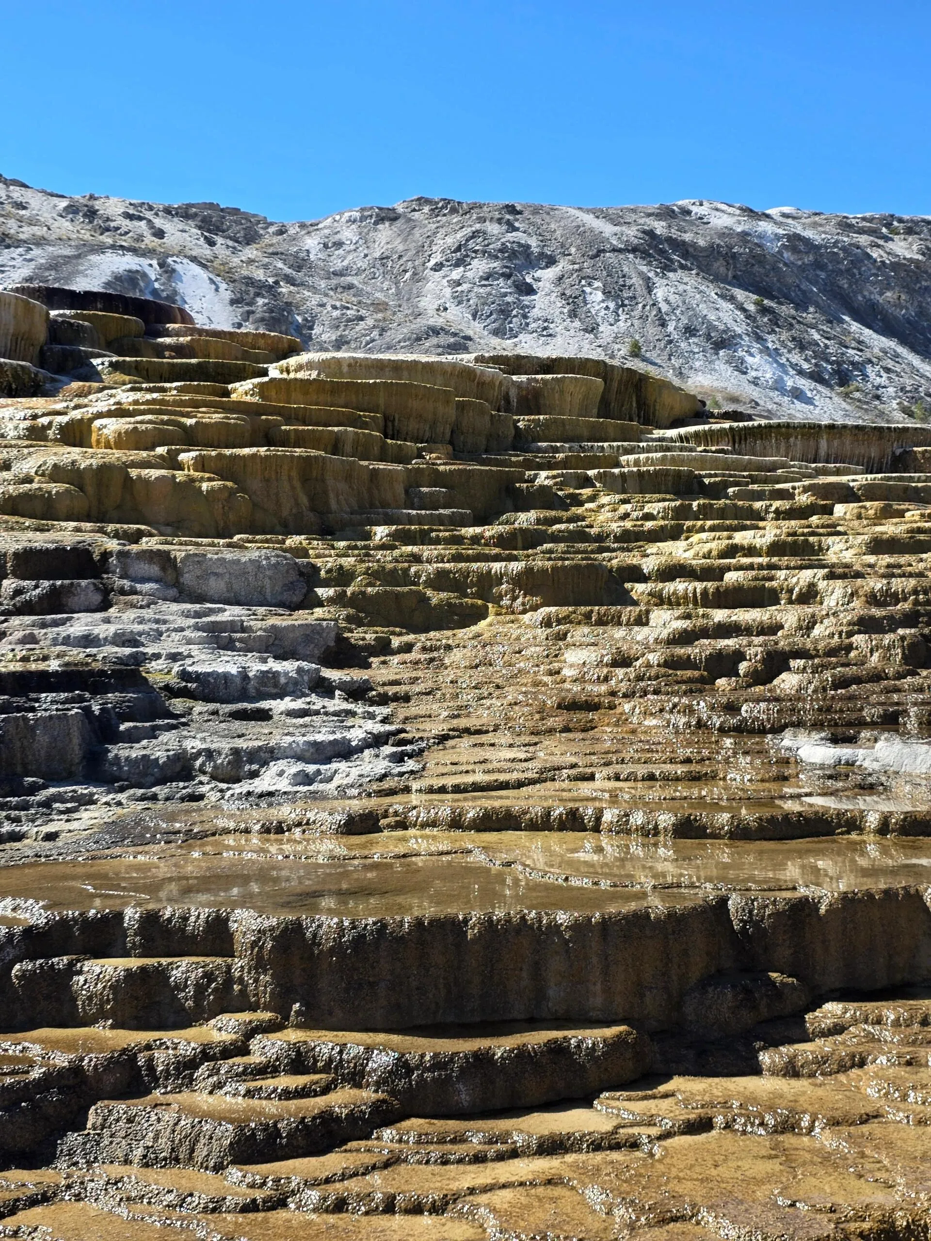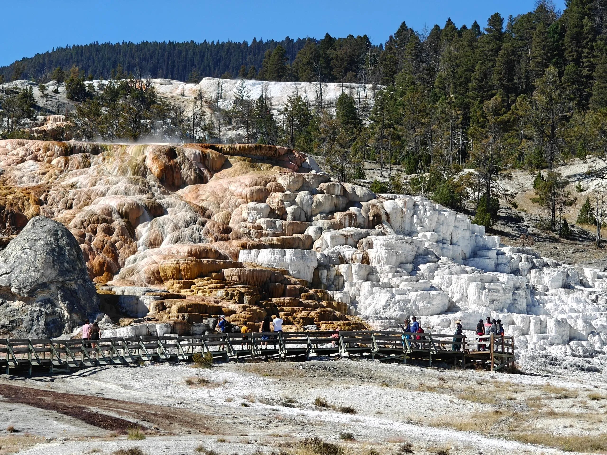 第二天行程安排在上八区,随后前往黄石湖住宿。早晨驱车约一个半小时到达猛犸热泉景区,从North Trailhead出发,沿栈道欣赏各种温泉和梯田。中午在猛犸游客中心休息用餐,之后驱车至大峡谷游客中心,并前往观景点欣赏峡谷和下瀑布。