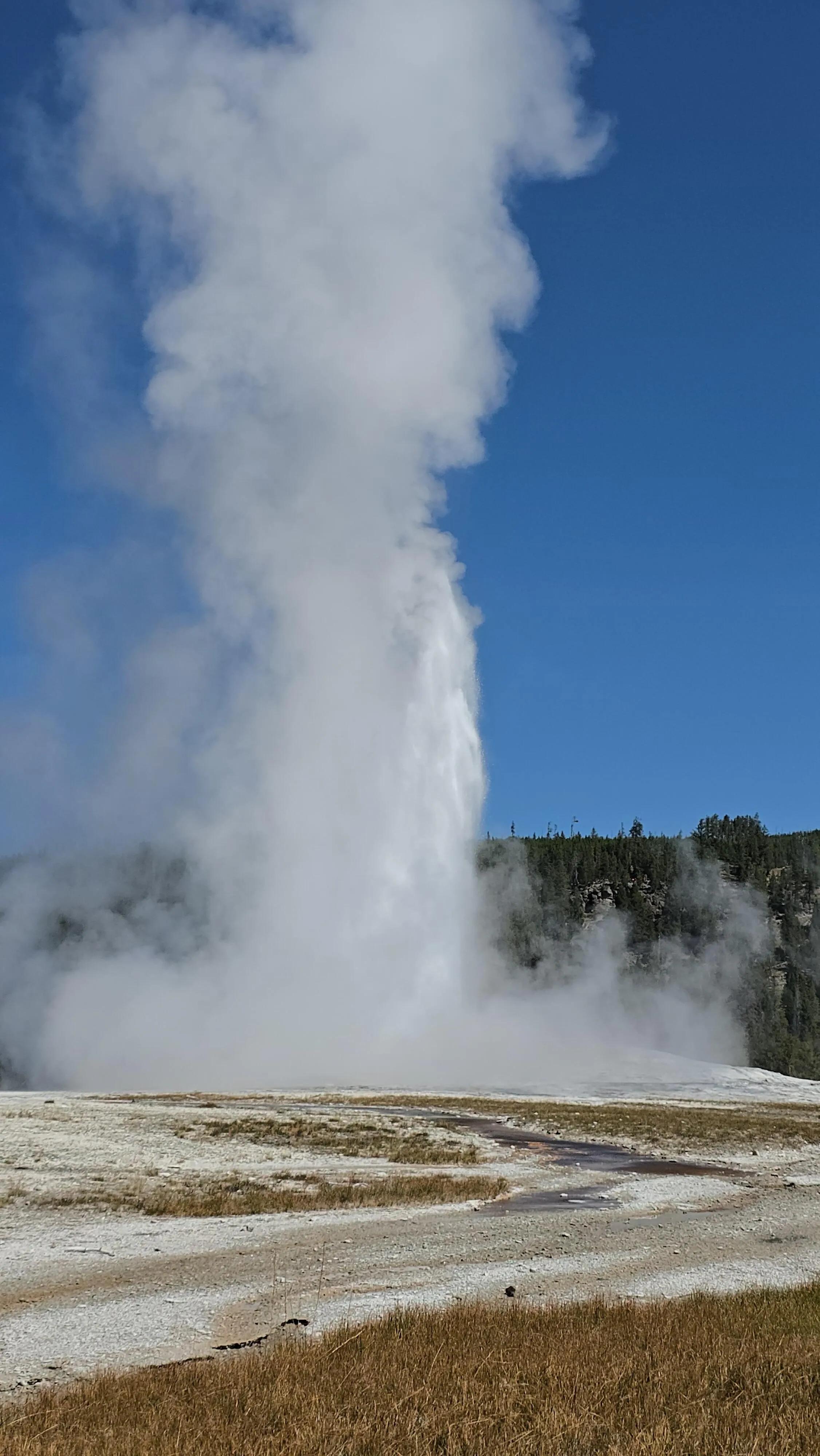 行程第一天主要安排在下八区左边。 首站是老忠实游客中心 ,等待著名的老忠实间歇泉喷发。等待期间可以去USPS寄明信片。大约一小时后,终于看到了令人震撼的喷发景象。