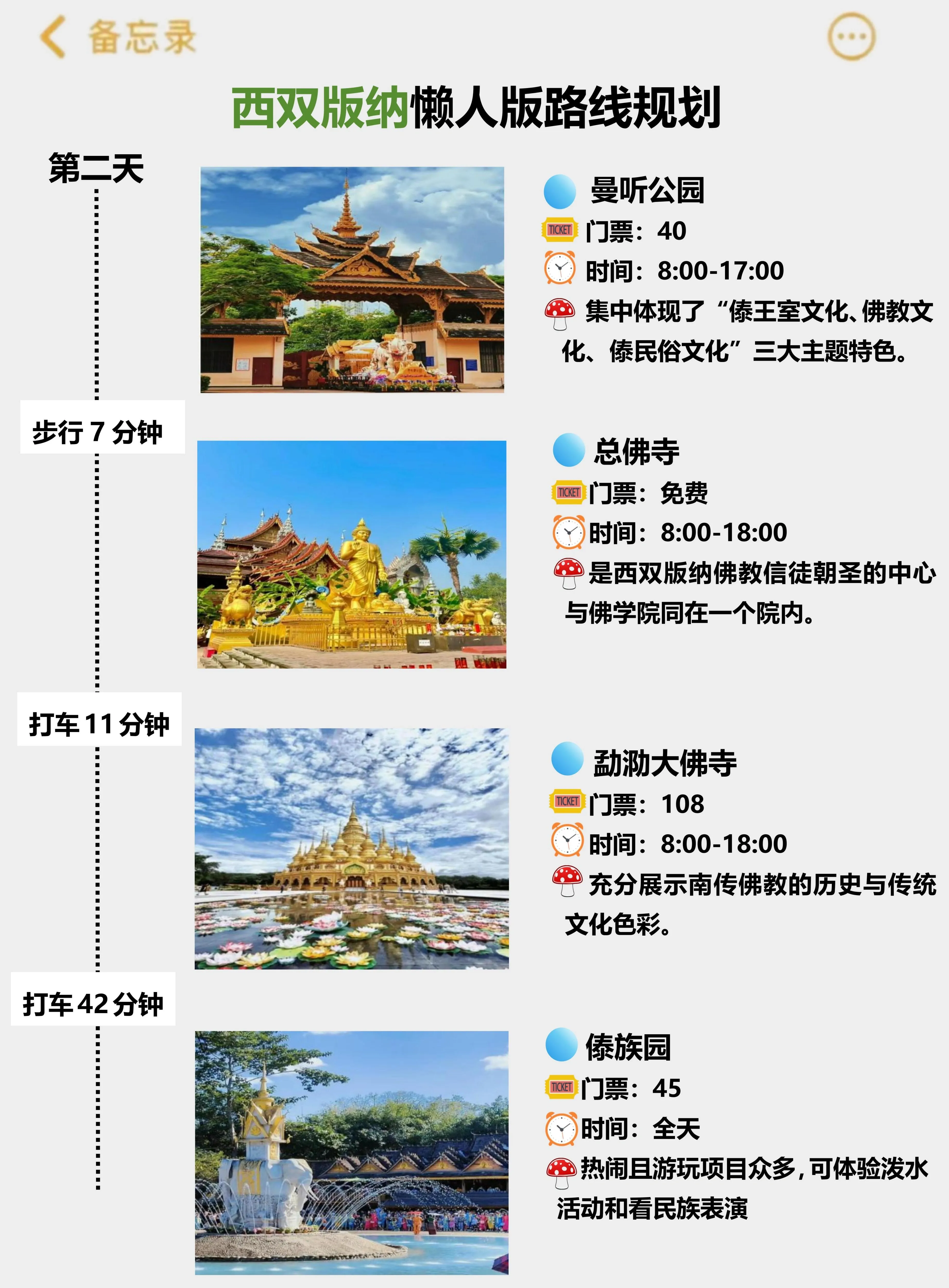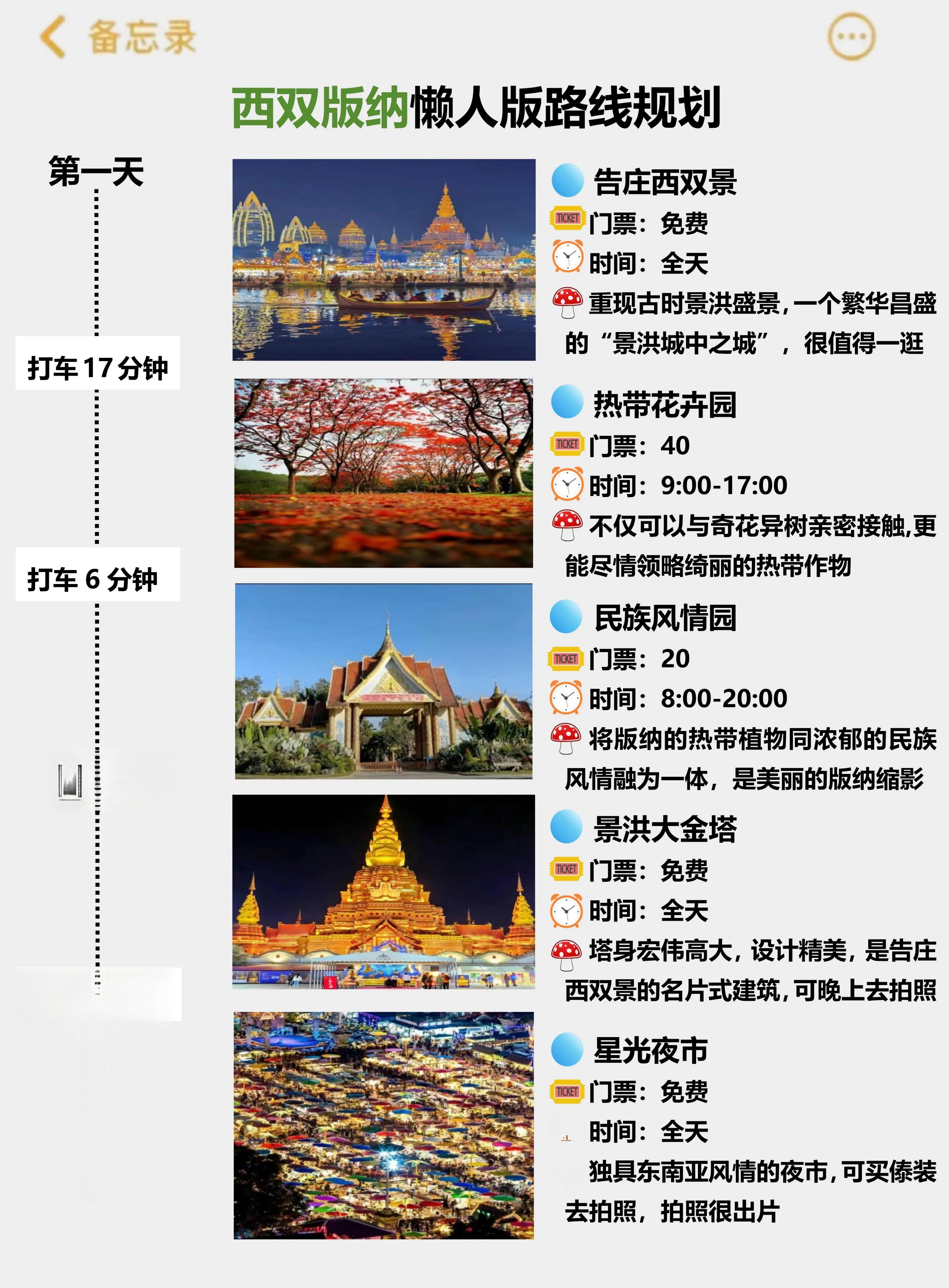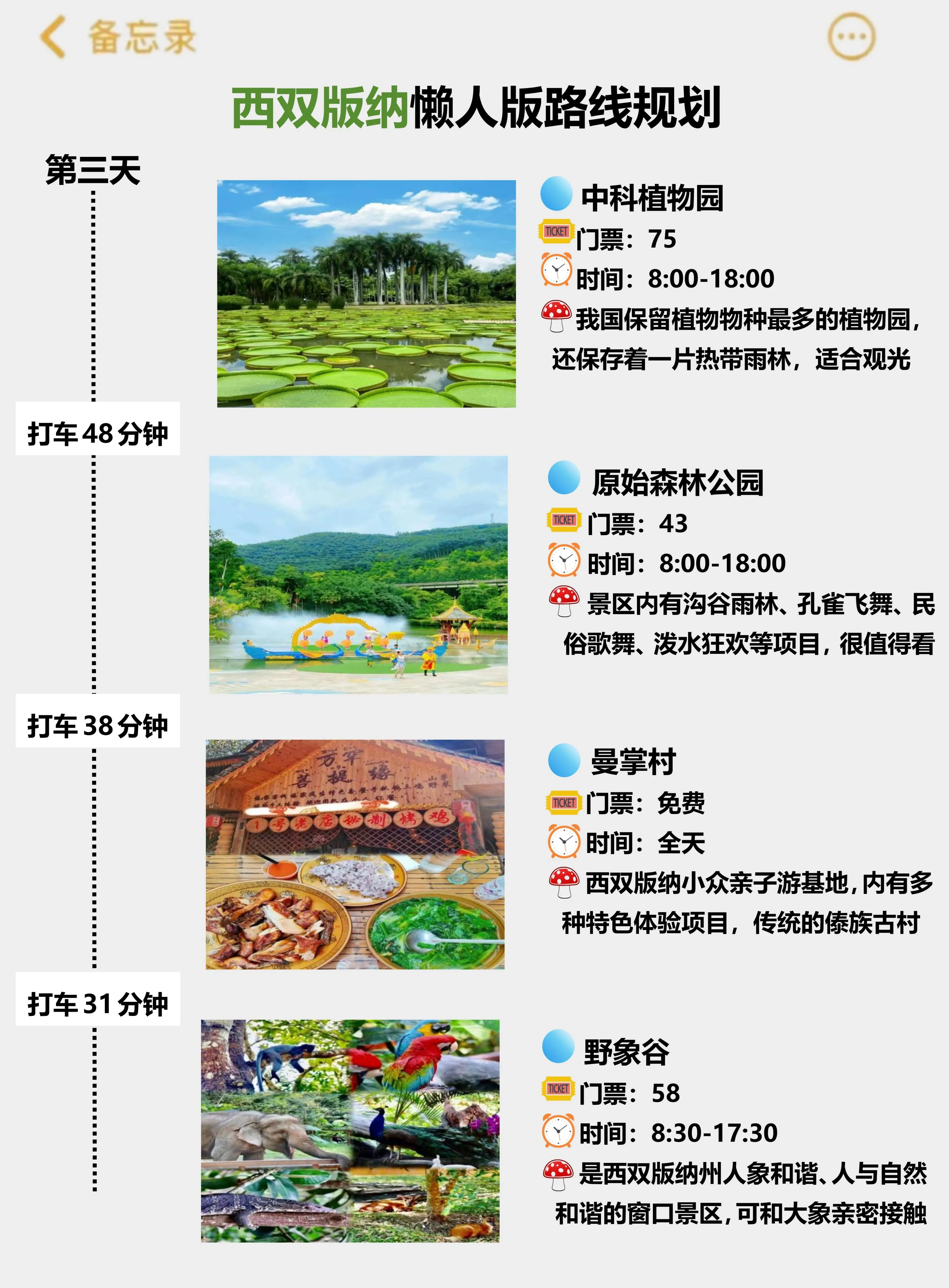 西双版纳是一个美丽的旅游胜地,但需要提前做好攻略,否则可能会错过很多精彩景点。这里为大家整理了一份实用的西双版纳三日游行程: