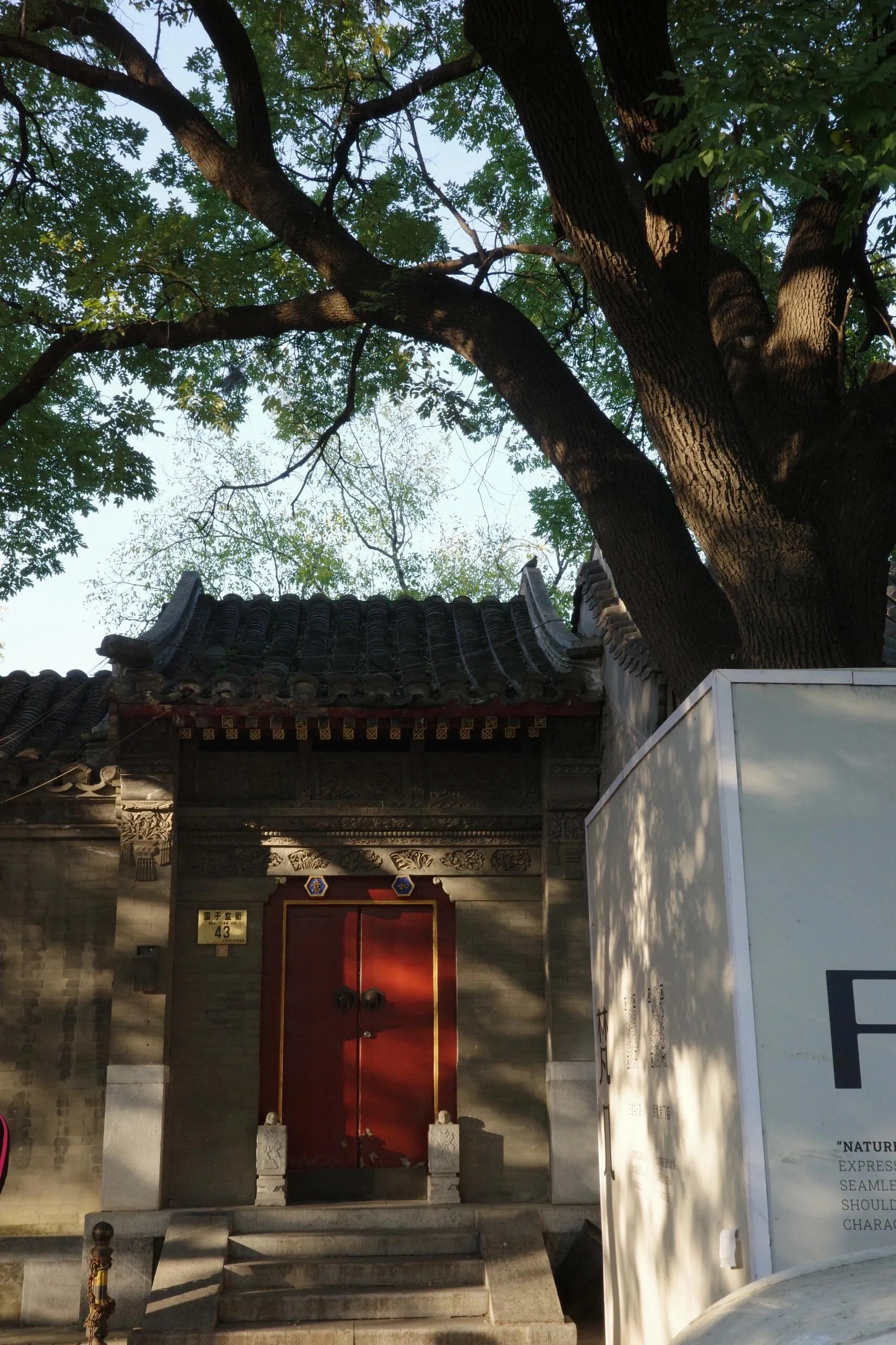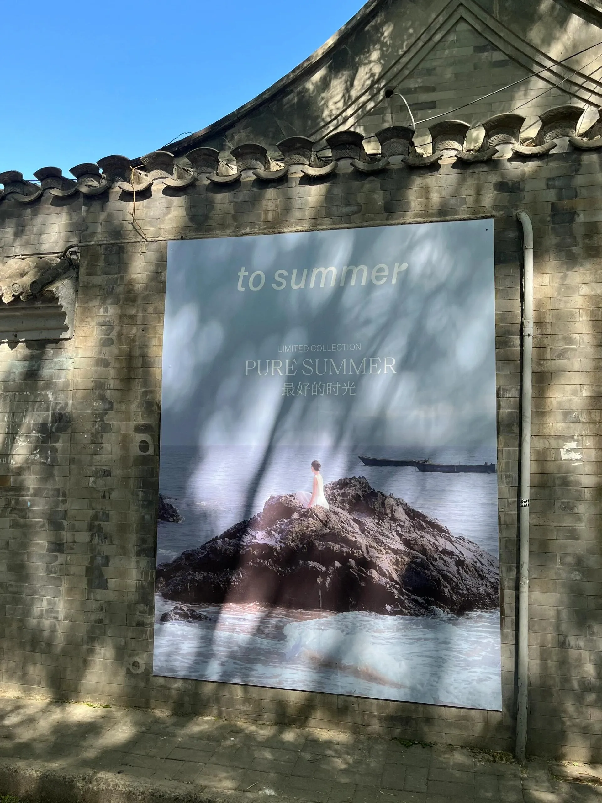 观夏国子监店:店面旁边的墙面经常更新他们的季节海报,在光影下十分美丽,就在旁边叉出去的箭厂胡同