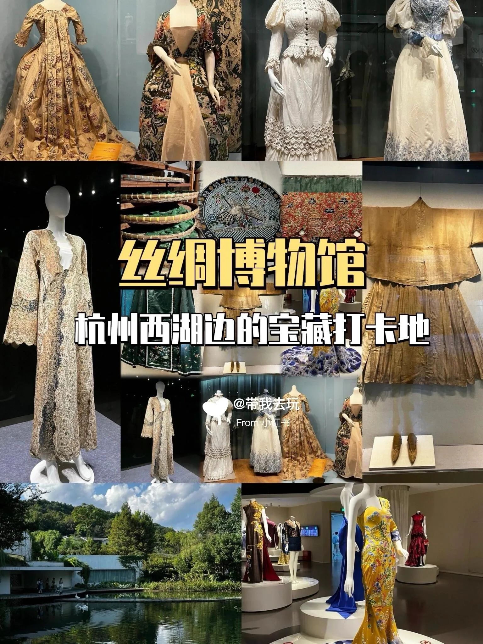 丝绸博物馆坐落在西湖边上,是一个小众的打卡地。这里不仅可以了解布料和织机的历史,还能欣赏中西方服装的时尚演变。馆内艺术品丰富精致,馆外环境优美。