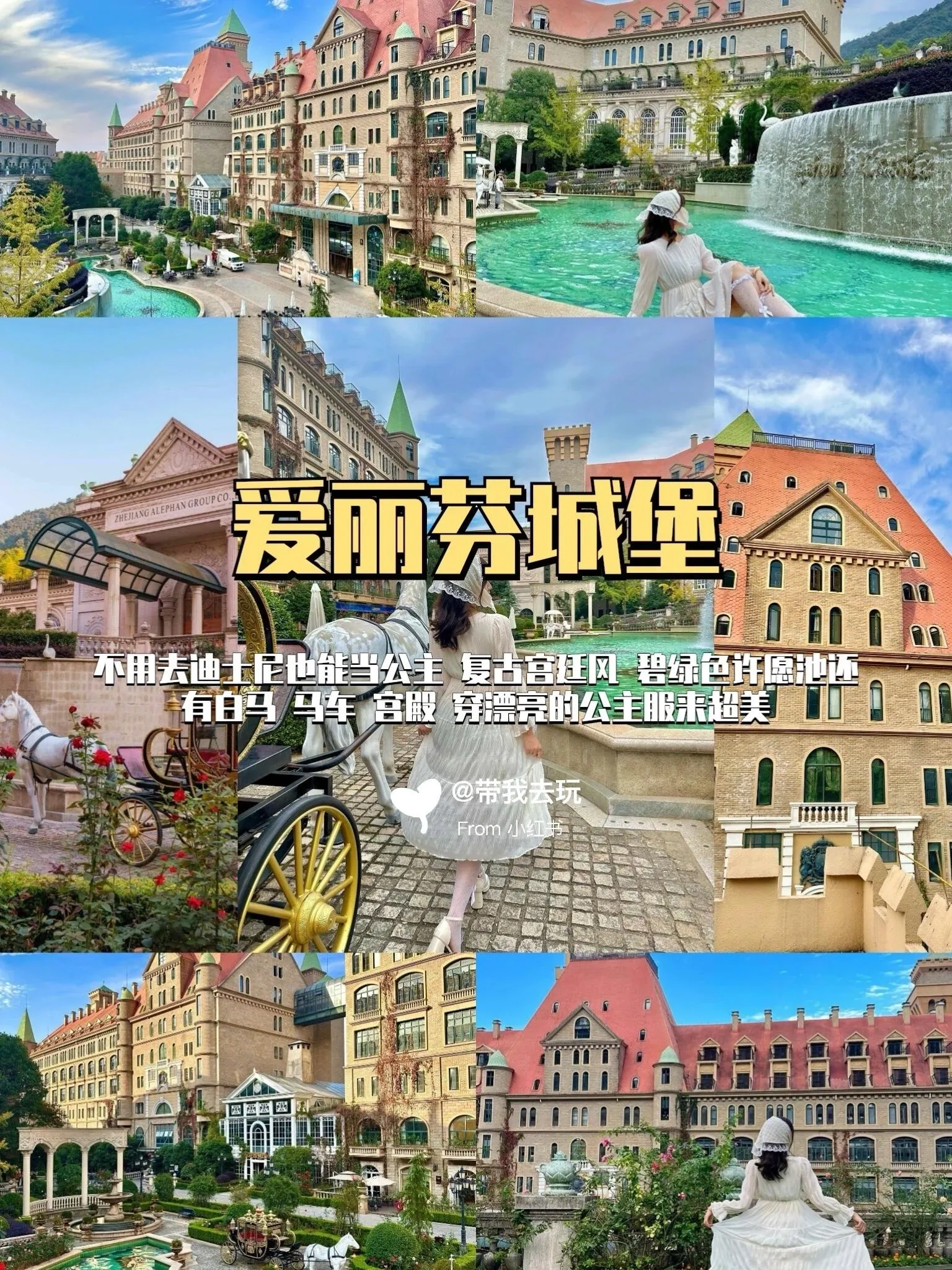 爰丽芬城堡位于富阳区,是一座美丽的欧式城堡。这里有碧绿的许愿池、白马、马车、宫殿等,仿佛置身童话世界。穿上漂亮的公主裙来这里拍照,效果会很棒。