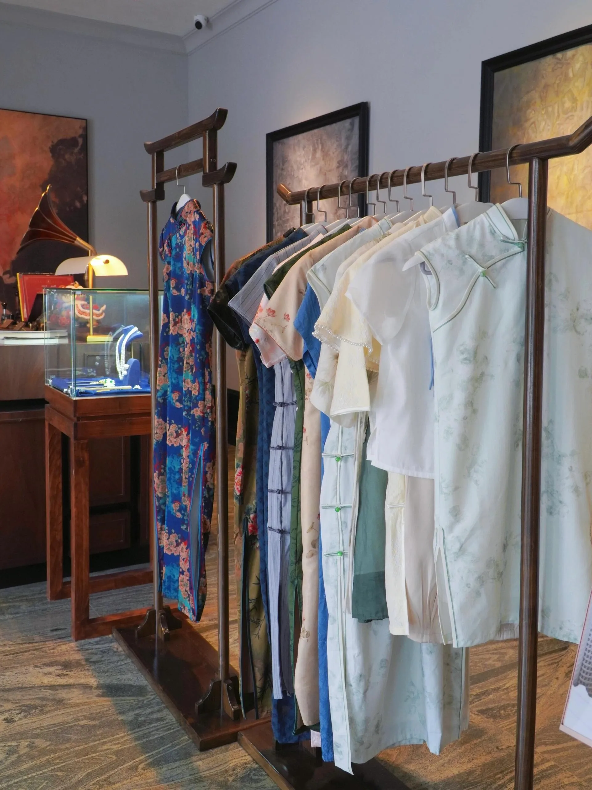 走进酒店大堂, 复古的吊灯洒下柔和的光芒 ,映照出精美的雕花家具和典雅的装饰,瞬间将人带入了民国时期的氛围中。酒店贴心地在 一楼大堂提供免费的旗袍换装服务 ,让游客可以身着旗袍,感受那个年代的优雅。