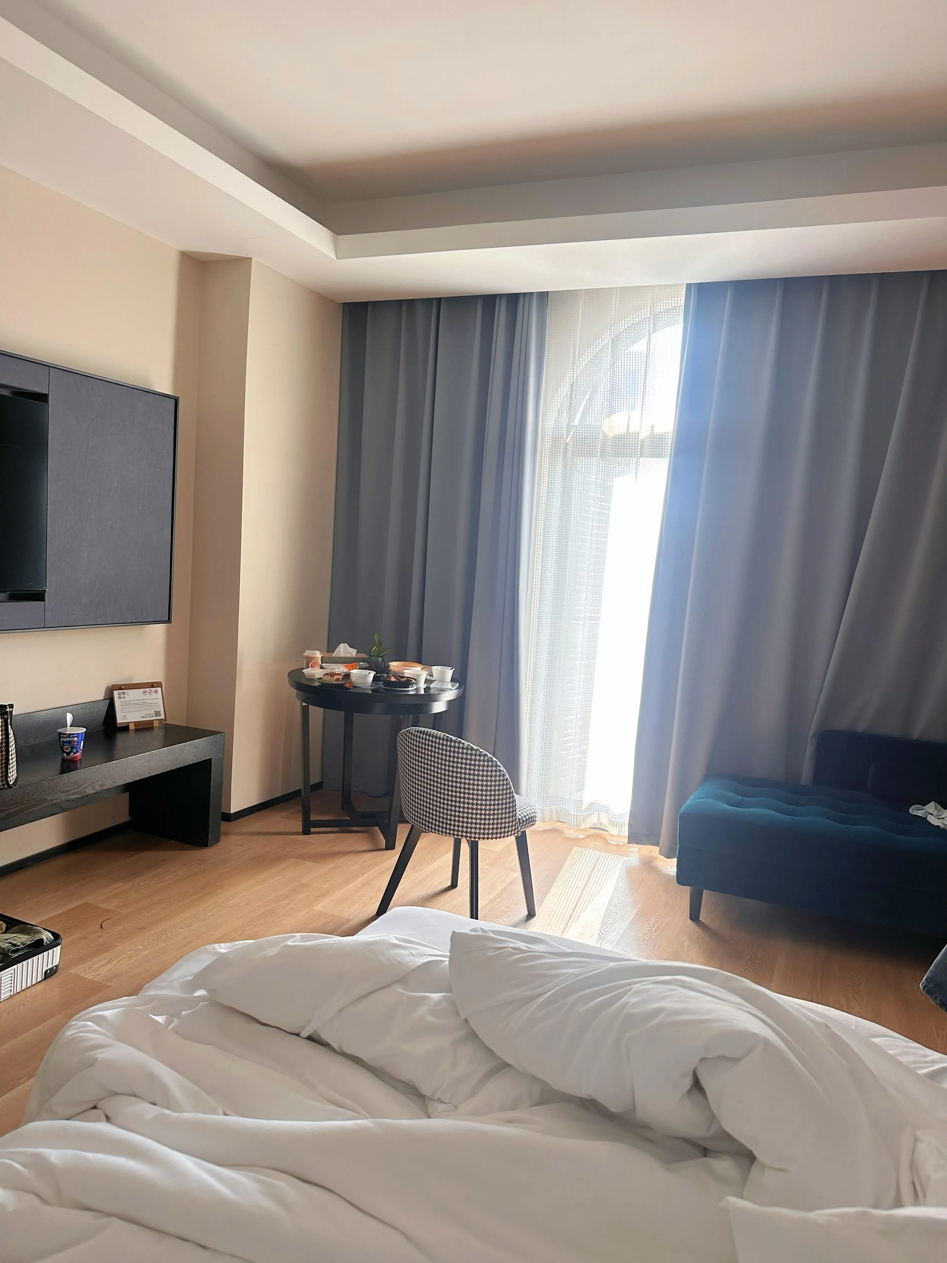 酒店的 客房设计也充满了民国韵味 。复古的床铺搭配柔软的床品,不仅带来舒适的睡眠体验,更让人仿佛置身于民国时期的私密空间。精致的窗帘、古雅的台灯等细节,无不散发着浓郁的民国气息,让游客更深刻地感受到武汉这座城市的历史底蕴。