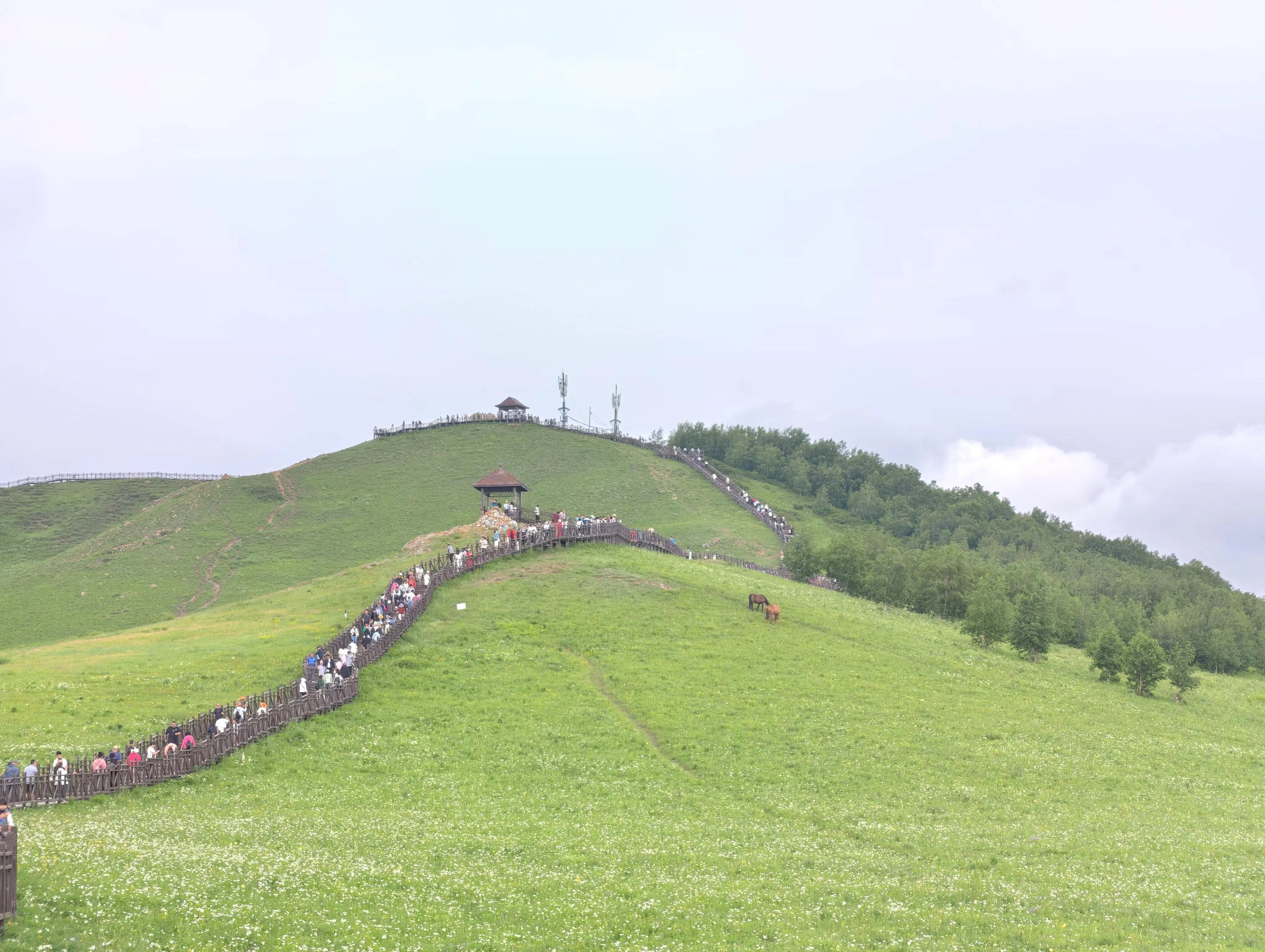 从天津出发前往承德。中午在承德品尝了当地特色的剪刀面,顺路参观了避暑山庄,随后驱车前往内蒙古的乌兰布统景区。