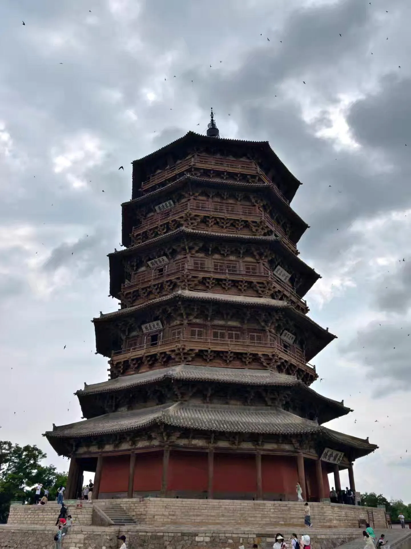 ,随后前往应县木塔(门票48元,观光车10元/人,不允许宠物进入)。下午游览悬空寺(门票15元,登临票100元需提前抢)。晚上在浑源县城的西关店吃小媳妇凉粉,凉粉、牛肉黄芪汤和黄米凉糕都很美味。