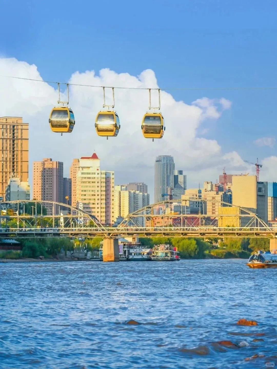 随后前往中山桥,这座“黄河第一桥”白天夜晚各有特色,建议都去看看。附近的白塔山公园值得一爬,半小时左右可到达观景台,俯瞰中山桥景色。